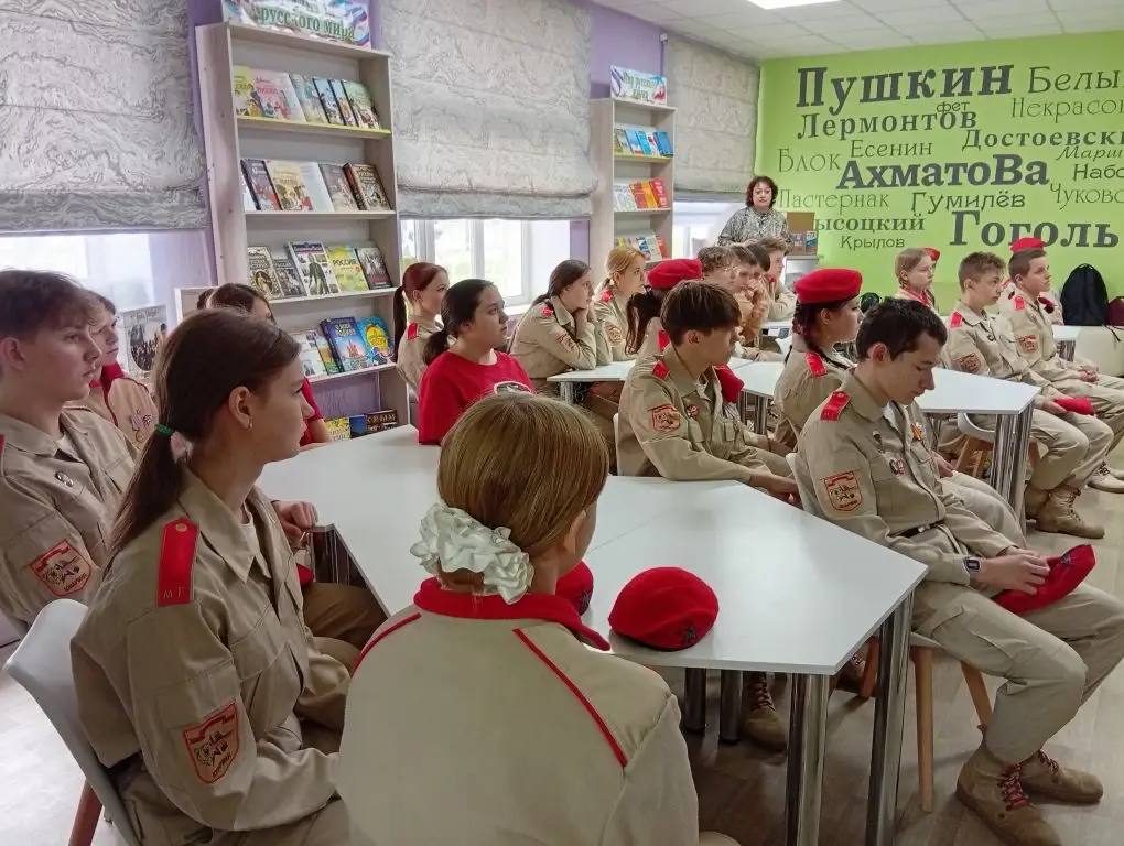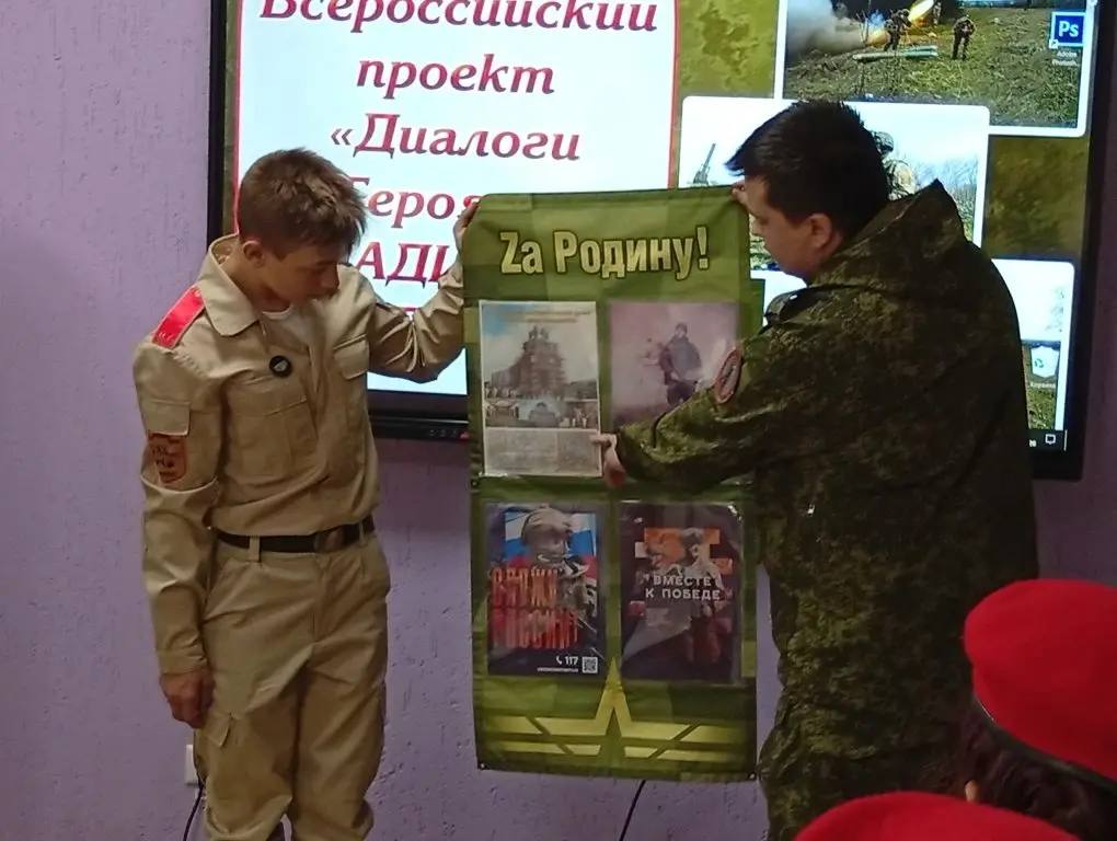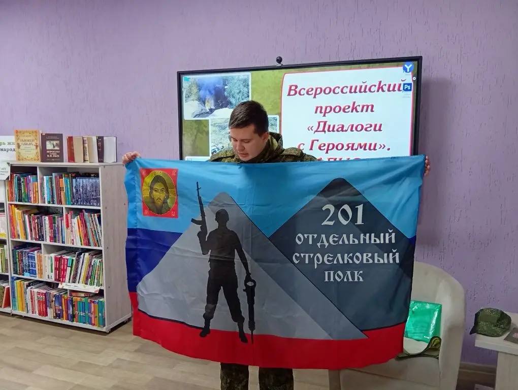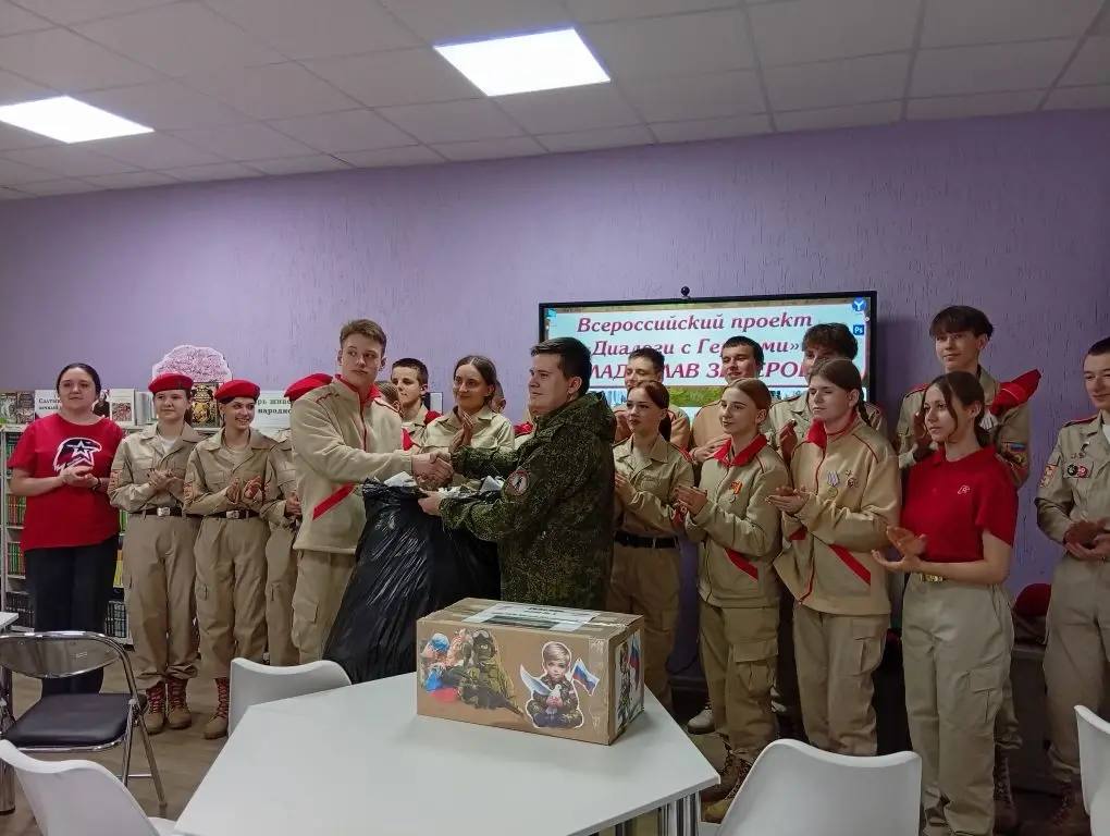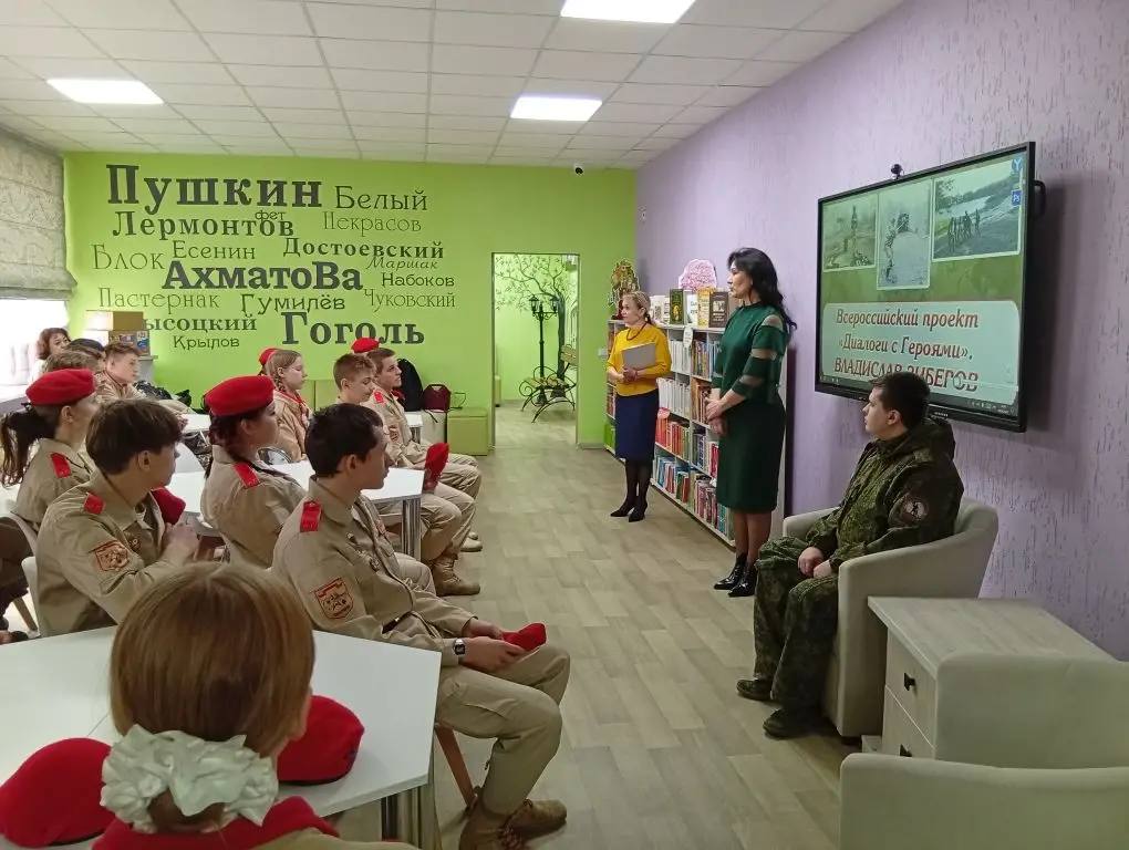 В Центральной городской библиотеке Стаханова в рамках всероссийского проекта «Диалоги с Героями» состоялась встреча юнармейцев с участником специальной военной операции Владиславом Зиборовым.