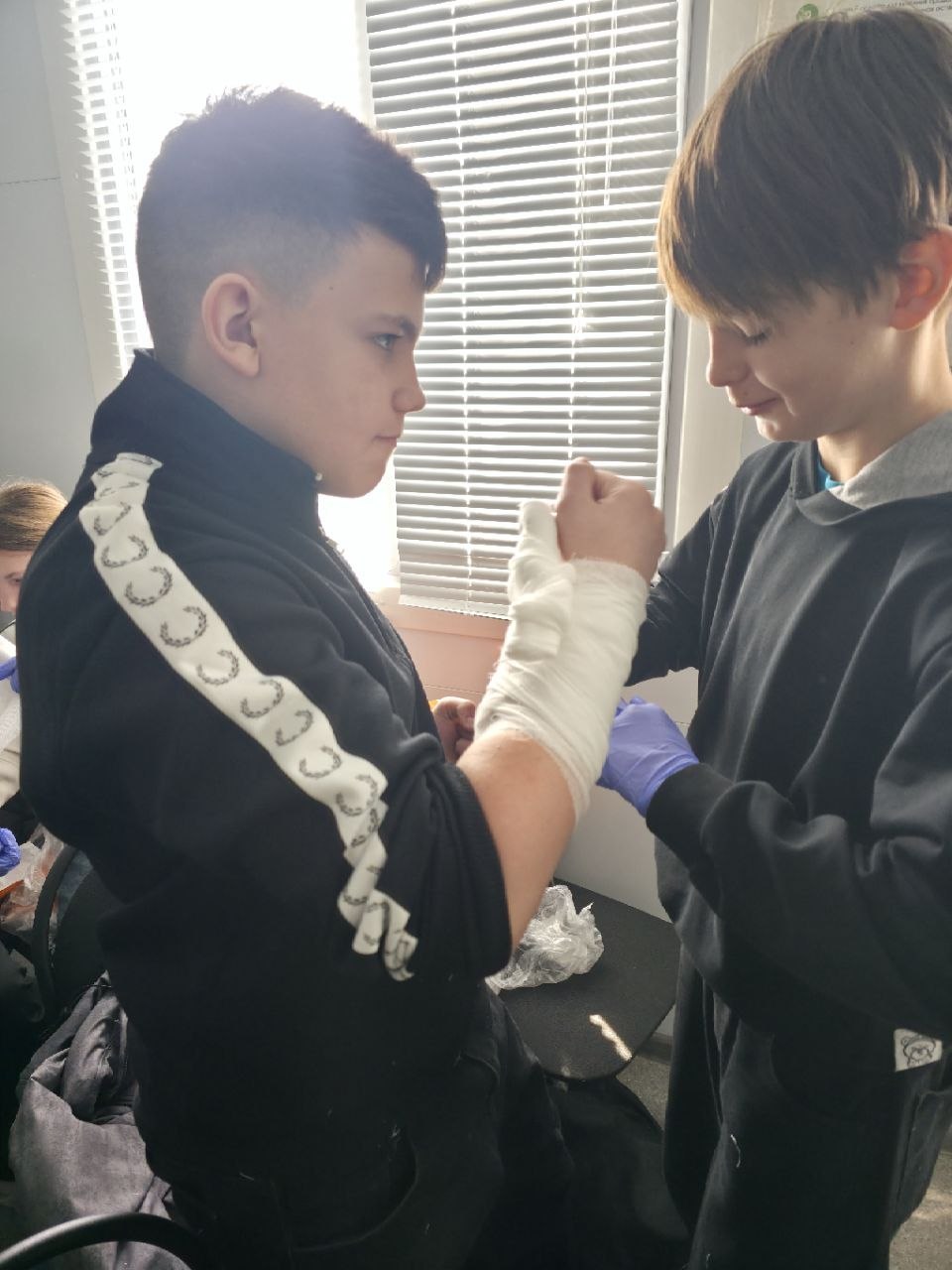 «Ребята активно принимали участие в занятии, с интересом осваивали тему: виды ран, травм, кровотечений, способы остановки кровотечений, учились накладывать повязки, жгуты. Было приятно осознавать, что они понимают важность владения этими знаниями, и свою возможную роль в любой экстренной ситуации», - отметили фельдшеры Яна Щербакова и Кристина Тищенко