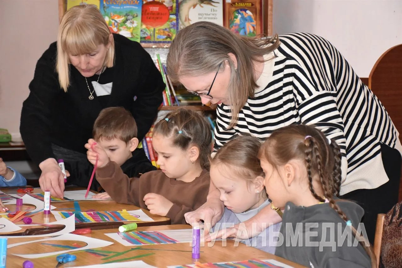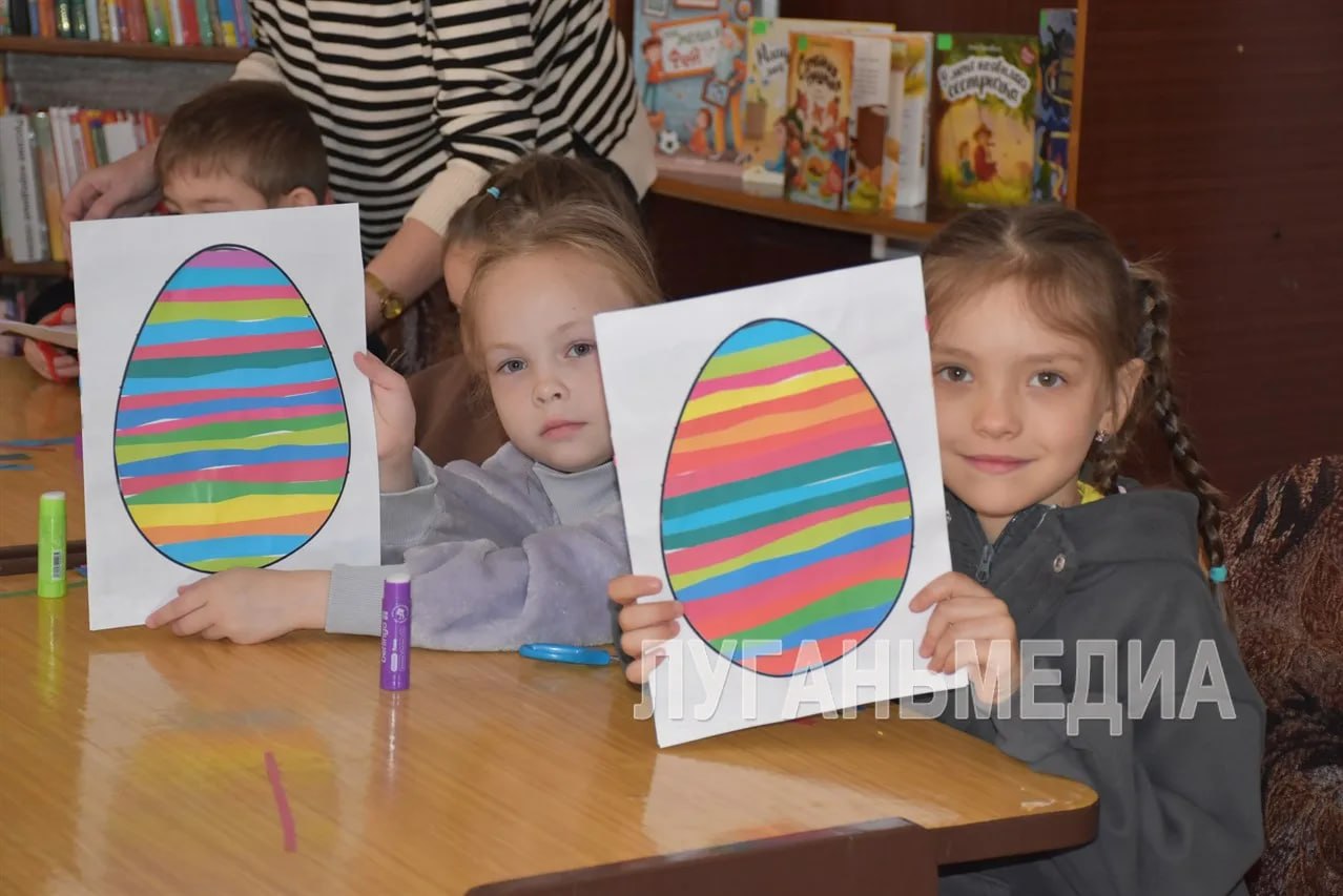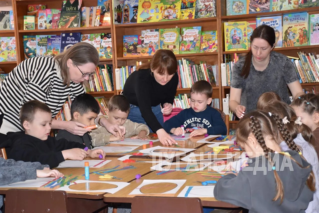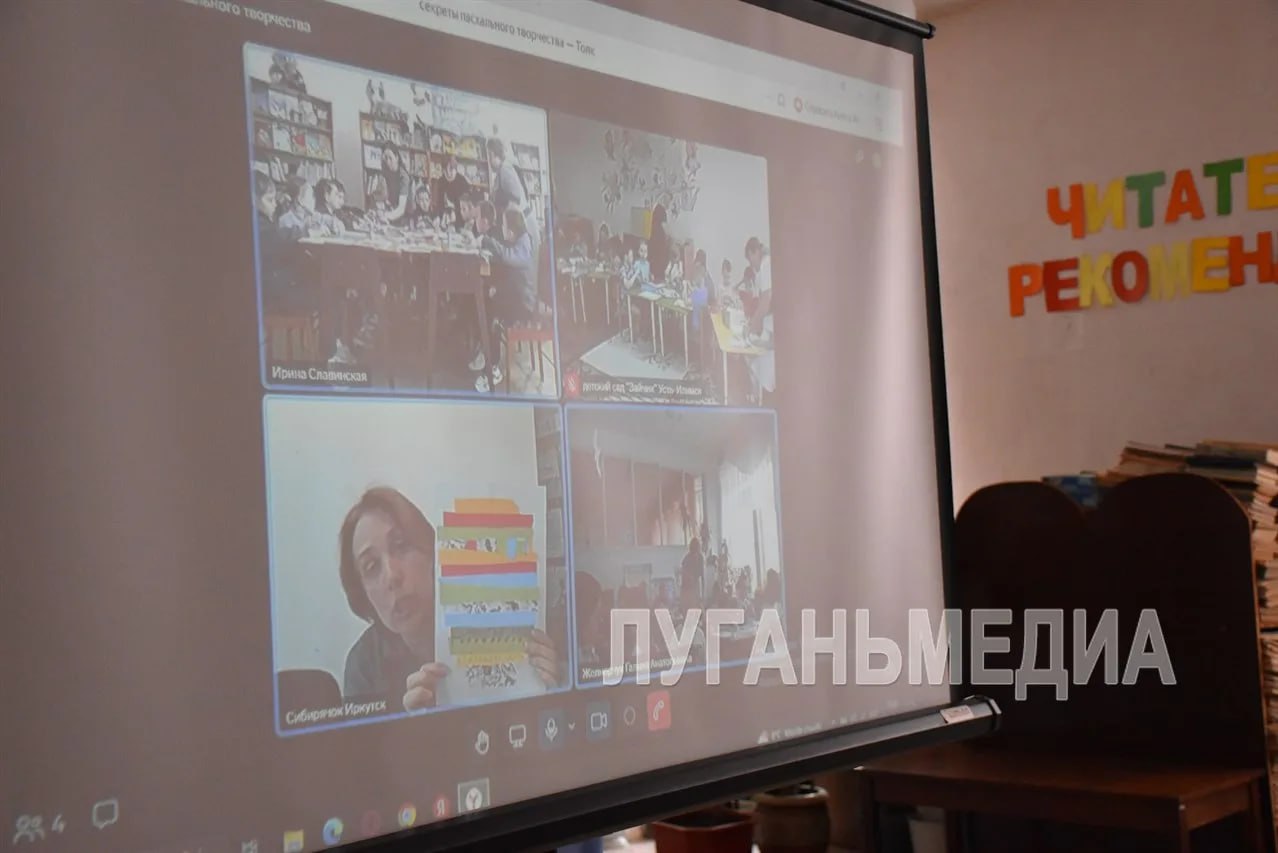 На базе детской городской библиотеки ребята и воспитатели смастерили аппликацию разноцветной крашенки. Кроме того, к телемосту присоединились и садики города Усть-Илимска: детский сад №25 «Зайчик» и №33 «Радуга».
