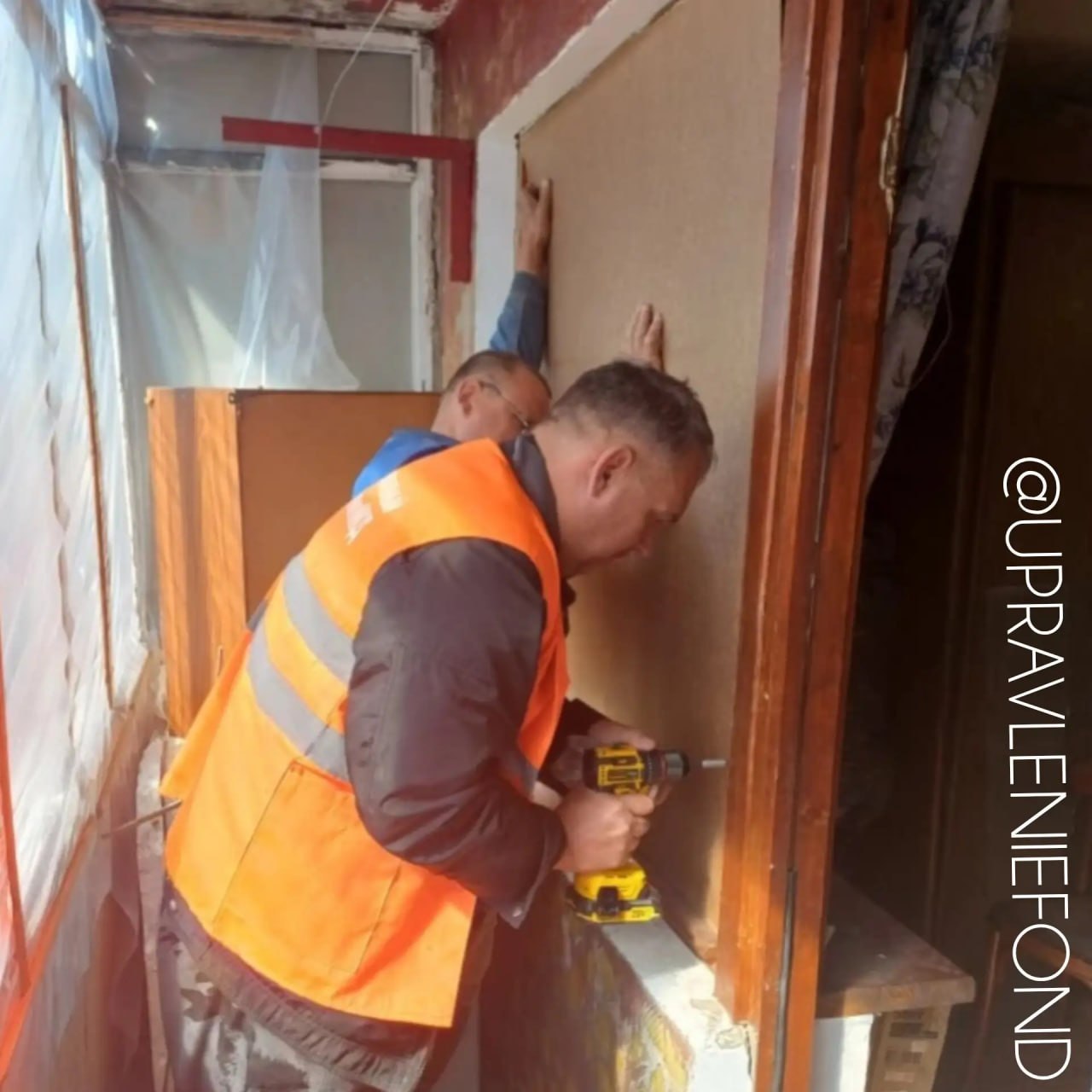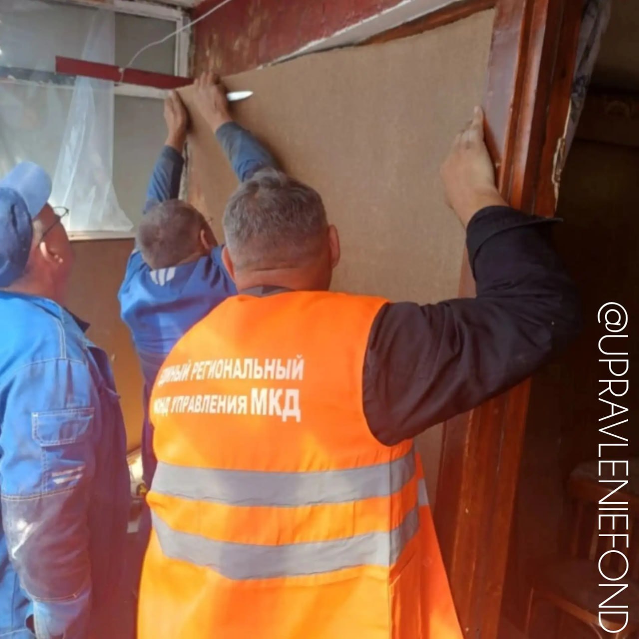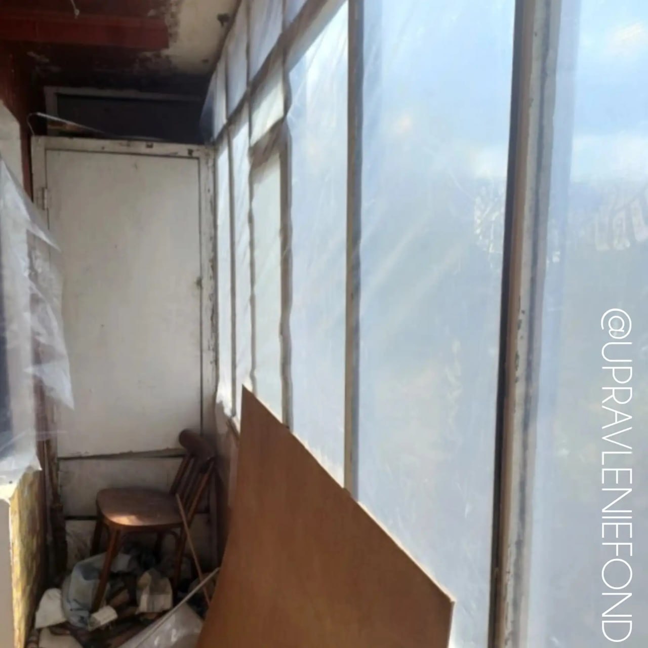 Управляющей компанией было выделено порядка десяти рулонов пленки и листов ДВП для закрытия теплового контура