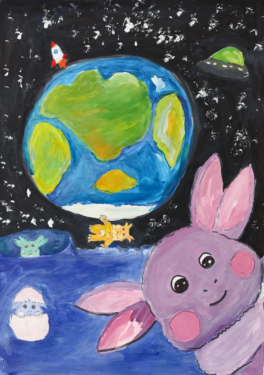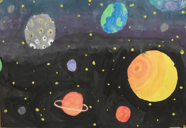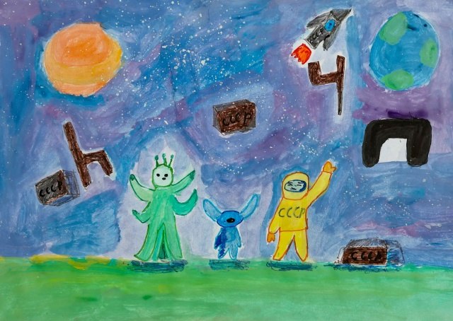 Нарисованные красками, детские рисунки мысленно переносят нас в космические просторы, знакомят с галактикой и планетами, а возможно, и с инопланетными жителями. Все рисунки отличаются индивидуальностью и неповторимостью, ведь фантазия детей не знает границ!