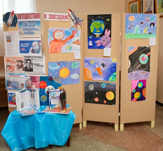 К Дню космонавтики в МБУ ДО «Рубежанская детская школа искусств» организована выставка рисунков обучающихся отдела изобразительного искусства «Путешествие к звездам»