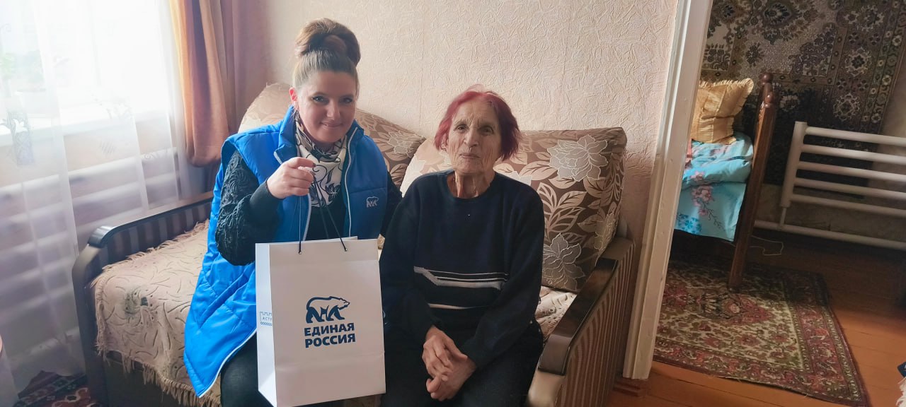 В преддверии светлого праздника Воскресения Христова, исполнительный секретарь Кременского местного отделения партии "Единая Россия" Алина Ветрова посетила единственного в городе Кременная ветерана Великой Отечественной Войны Анну Макаровну Дементьеву.