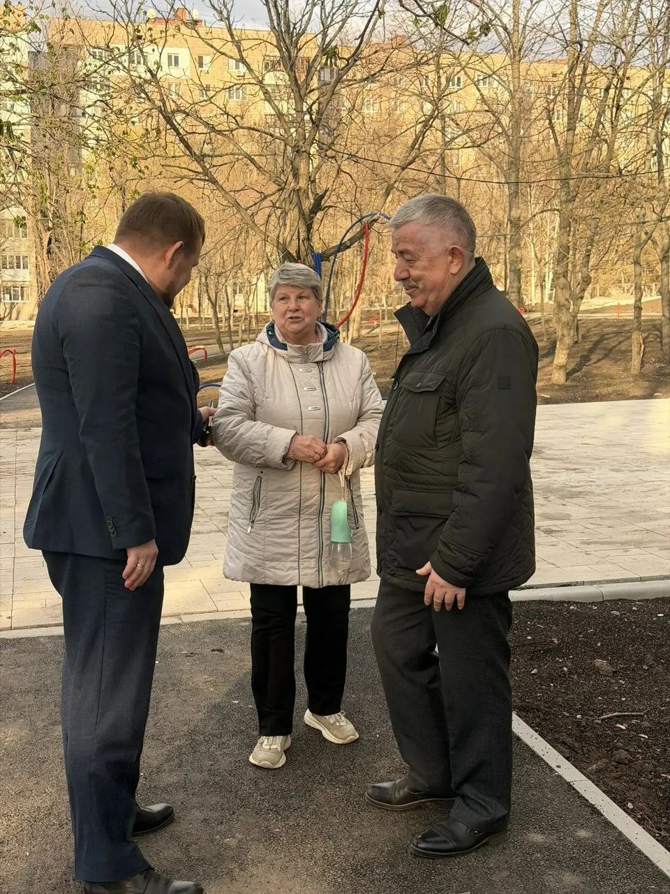 Во время визита пообщались с местными жителями, которые уже сейчас гуляют по территории парка, несмотря на незавершённые работы, и с радостью отмечают, что совсем скоро он откроется. В ходе беседы они поделились своими предложениями и замечаниями.