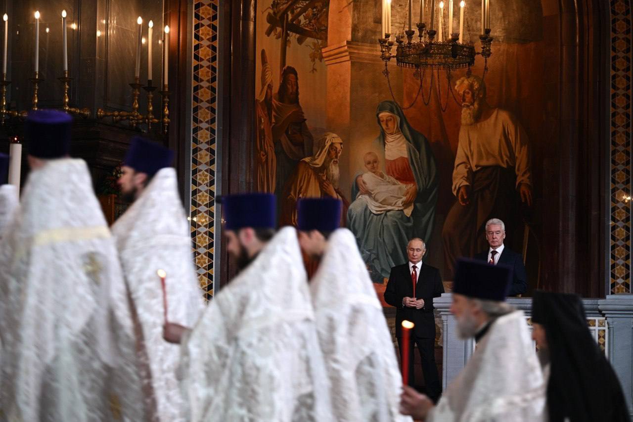 Президент России Владимир Путин вместе с мэром Москвы Сергеем Собяниным присутствовал на ночном пасхальном богослужении в храме Христа Спасителя. Об этом сообщает пресс-служба Кремля.