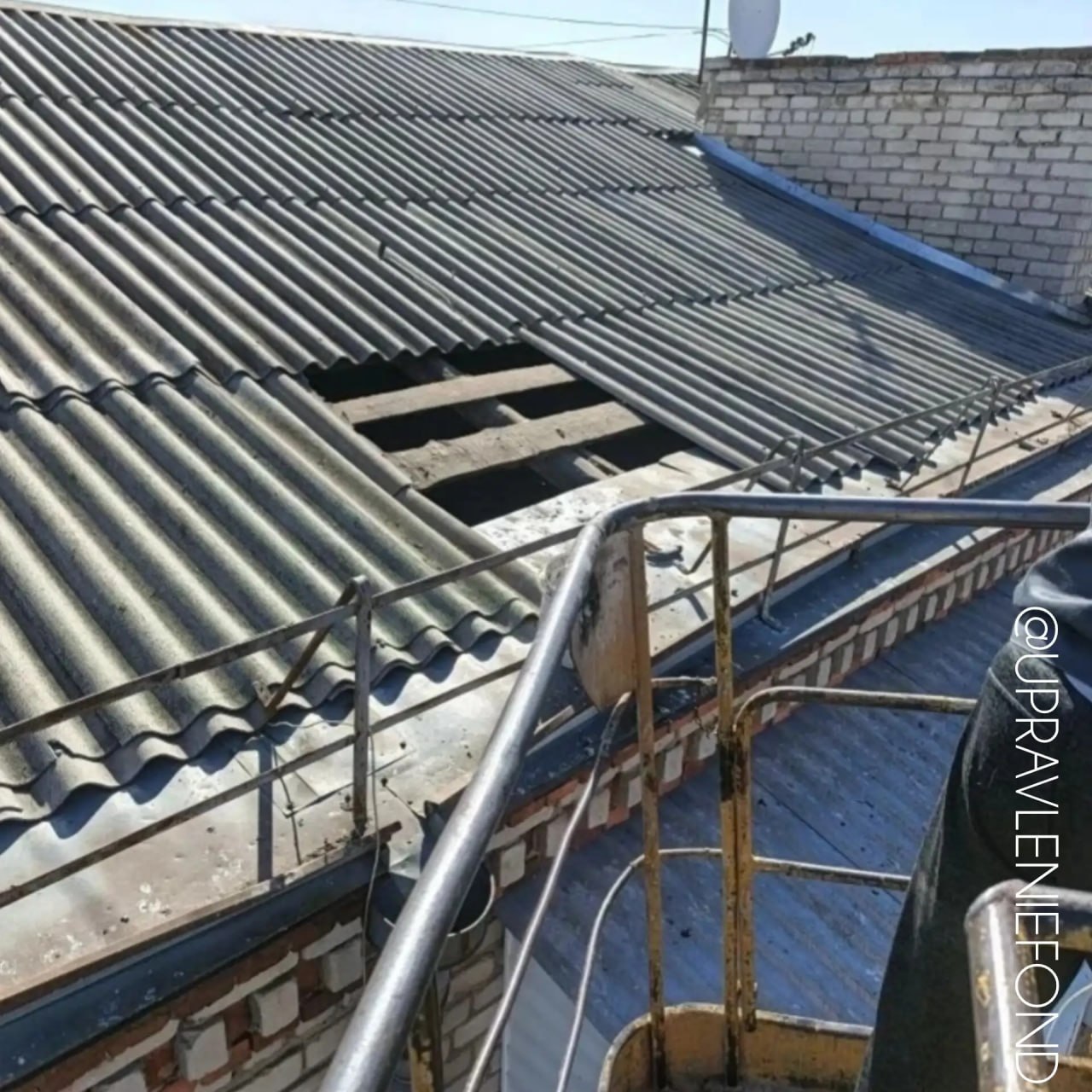 Похожая проблема образовалась в доме № 65 на улице Советской. Здесь также была выполнена частичная замена шиферной кровли, включая довольно сложный участок, примыкающий к дымовентканалу