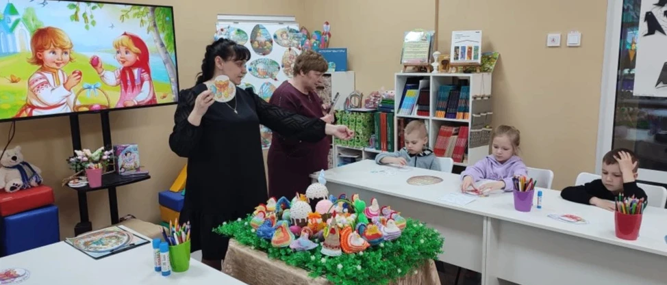 В детском центре Перевальского районного исторического музея прошло мероприятие под названием "Что такое Пасха?" для воспитанников детского сада "Юбилейный".