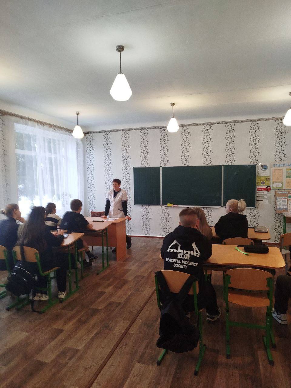 Заведующая ФП, фельдшер ГБУЗ «Меловская ЦРМБ» ЛНР З.В. Бескобыльная провела профориентационную беседу с учащимися 9-х и 11-х классов ГБОУ ЛНР «Никольская средняя школа»