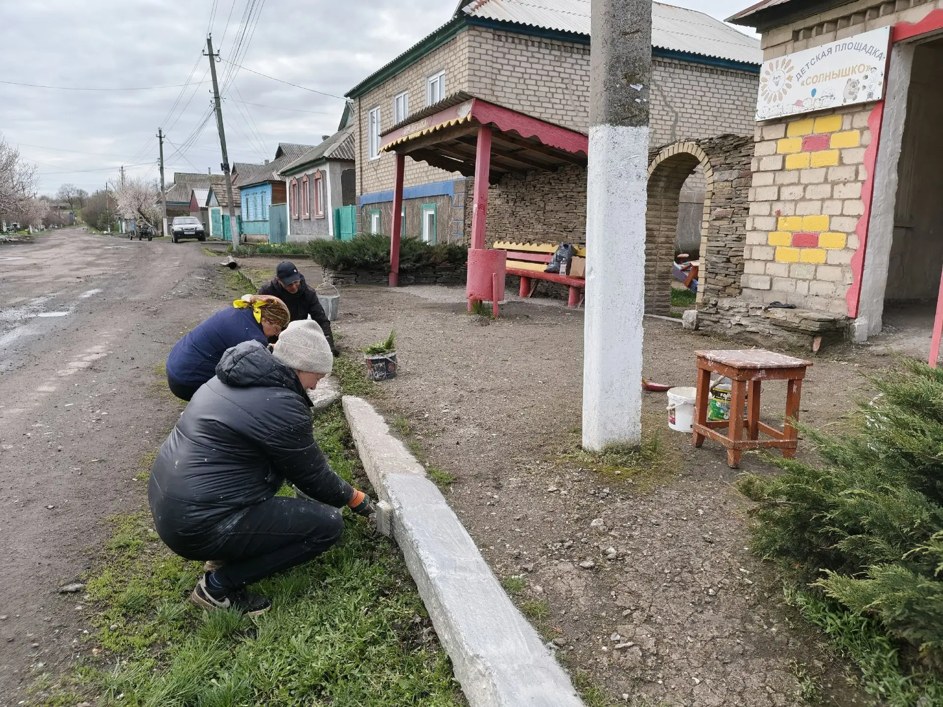 Апрельская погода не балует теплом и солнцем, а также не позволяет заниматься благоустройством на открытых территориях. Но это не пугает жителей поселка Городище, их работа продолжается в любую погоду.