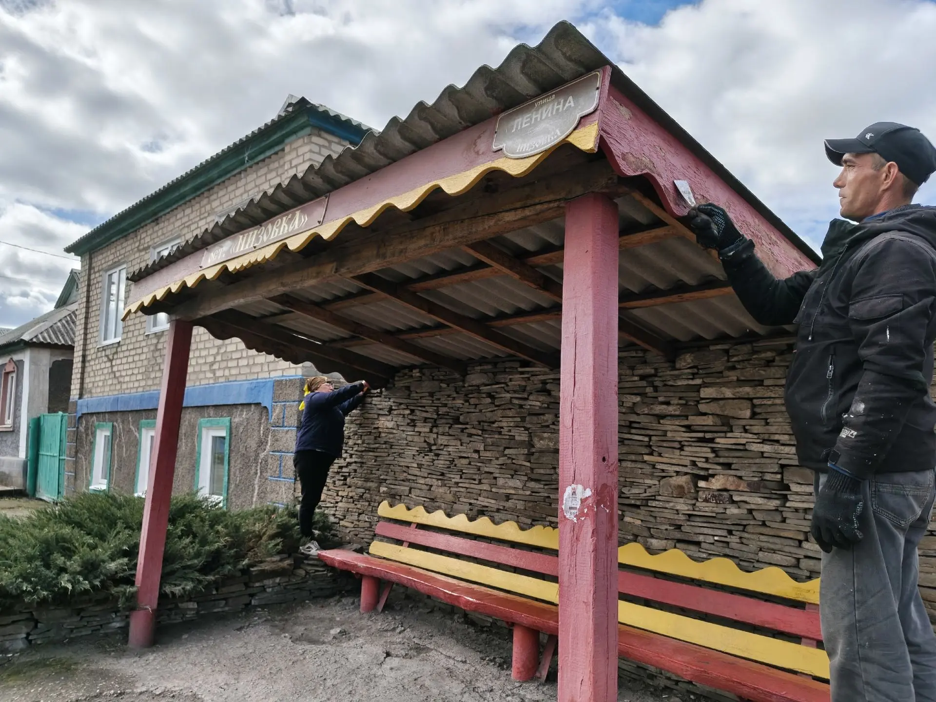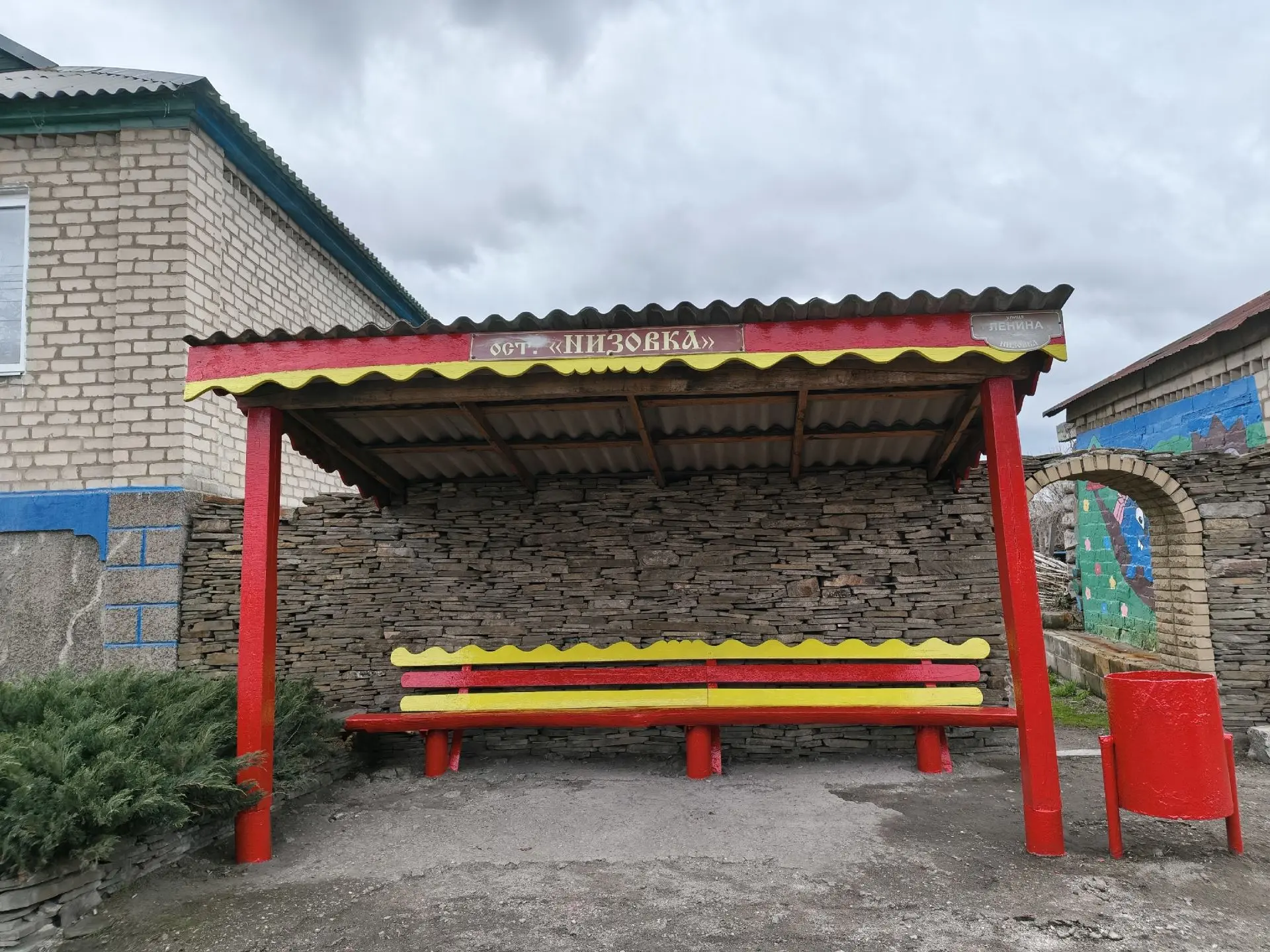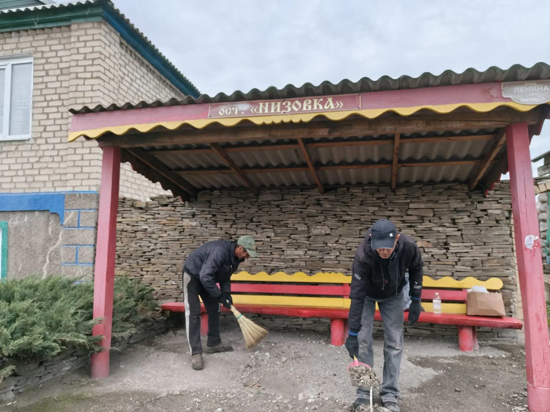 Остановка по улице Ленина (Низовка) — одна из остановок общественного транспорта, где собирается большая часть населения. Жители провели побелку внутри остановки, окрасили навес, лавочки, урны и доску объявлений.