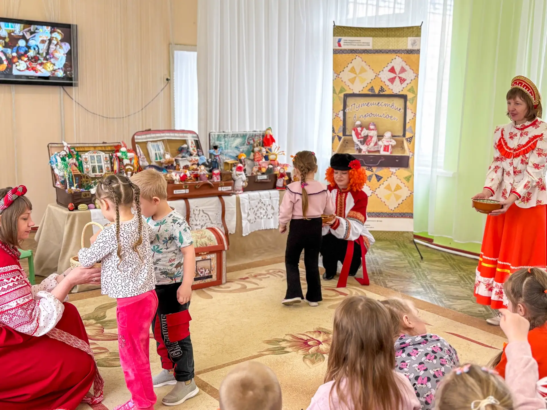 15 апреля команда проекта снова отправилась в путешествие к ребятам. Сказочные герои проекта «Путешествие в прошлое» посетили дошкольников Молодогвардейского детского сада «Ладушки» с презентацией музея народной культуры в чемодане.