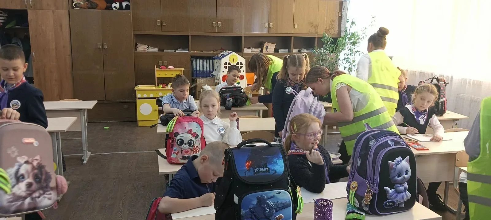 В стенах школы активисты организовали познавательный урок безопасности для самых маленьких — первоклассников. Ребята из отряда ЮИД в доступной и игровой форме объяснили детям, насколько важно быть заметным для водителей, особенно в сумеречное время суток и в пасмурную погоду.