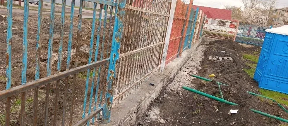 На сегодняшний день, на общественной территории у Ровеньковской школы № 6 ведется ремонт железобетонного фундамента, который станет надежной основой для нового ограждения, а также проводится тщательная зачистка металлоконструкций существующего забора.