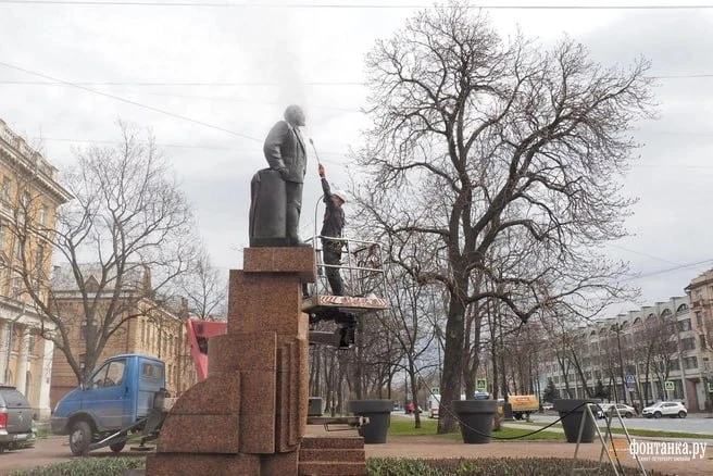 15 апреля — памятник Ленину на Большом проспекте В.О. (мыли с 18-метровой вышки);