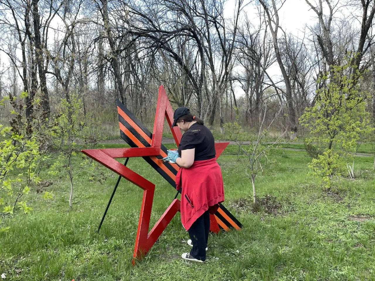 Для сохранения памятного места была выполнена важная работа — покраска монолитной глыбы в виде дота, а также звезды с Георгиевской лентой.