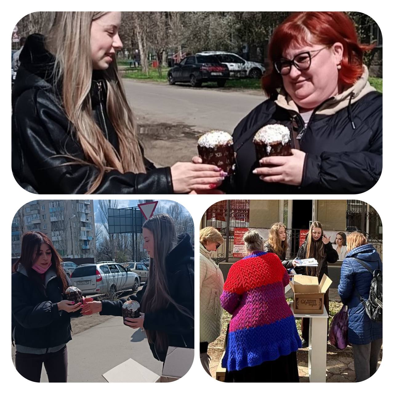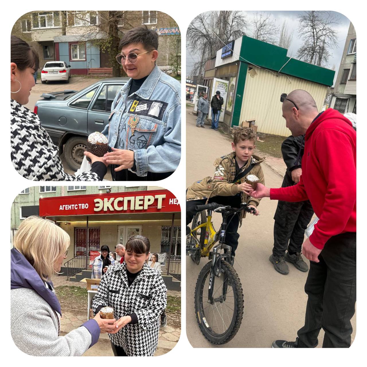 На площадке возле агентства недвижимости «Эксперт» прохожие получали в подарок ароматный кулич, как символ приближающегося праздника Пасхи.