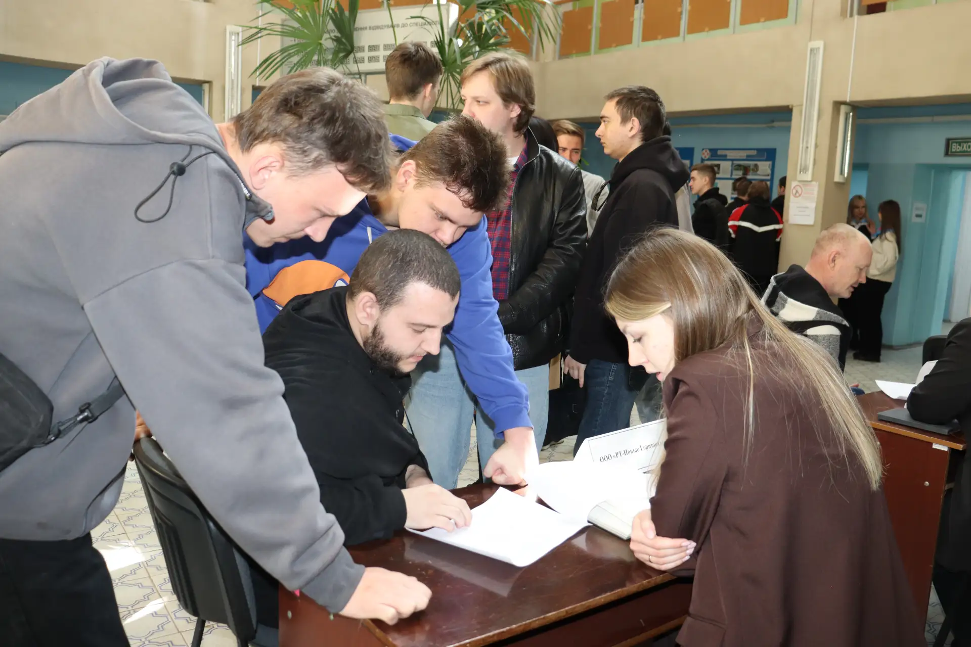 На площадке Территориального отделения Республиканского центра занятости населения ЛНР в городе Стаханове собрались работодатели, выпускники и граждане, ищущие работу.