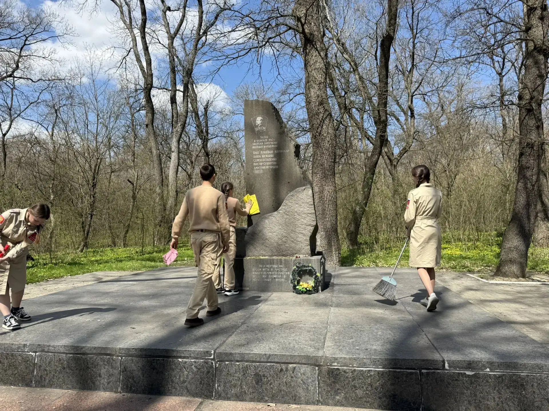 В рамках мероприятий по благоустройству памятных мест и воинских захоронений, связанных с периодом Великой Отечественной войны, в Ровеньках состоялся субботник у памятника в Гремучем лесу. Мемориал установлен на месте расстрела юных подпольщиков в 1943 году.