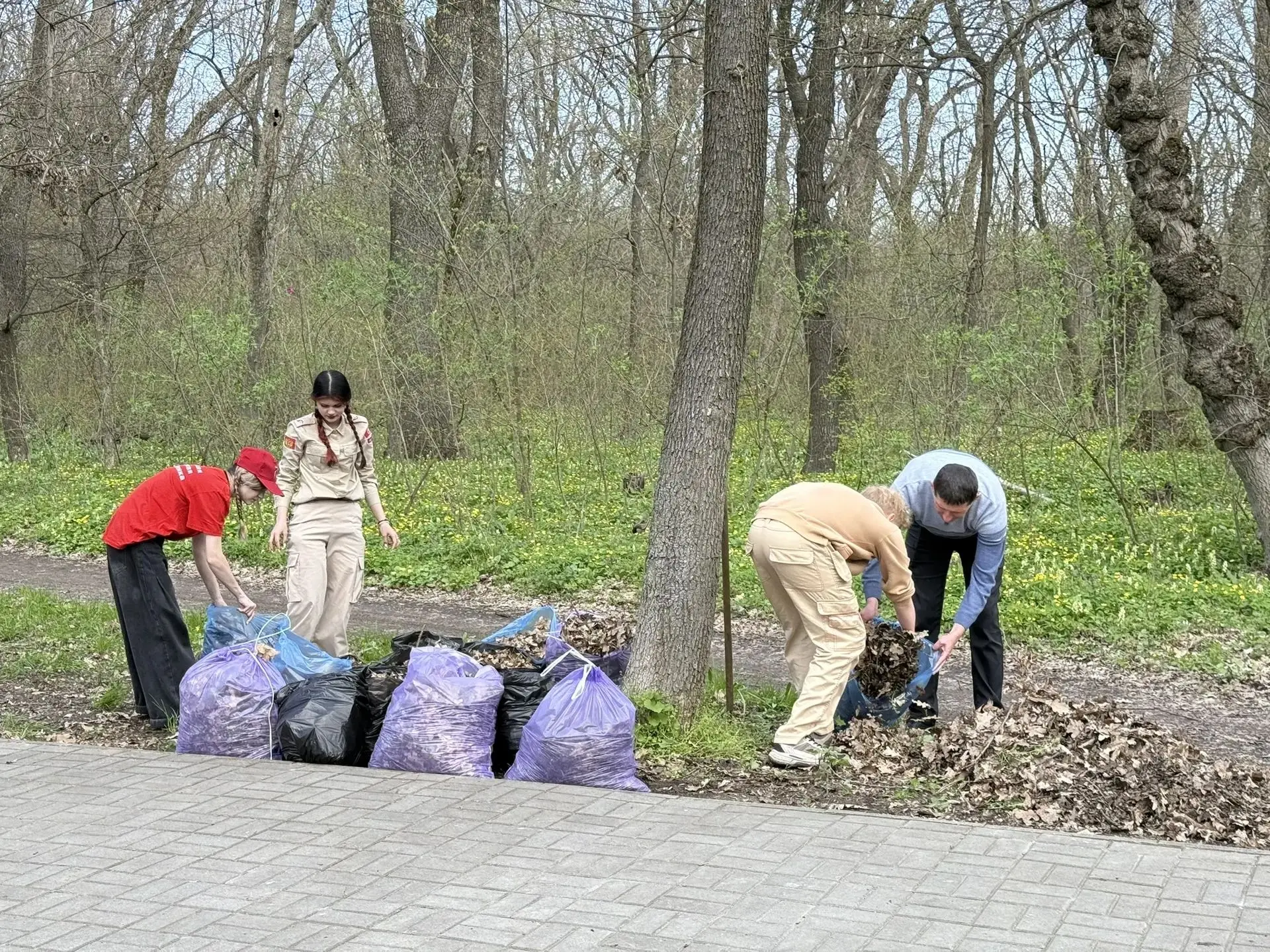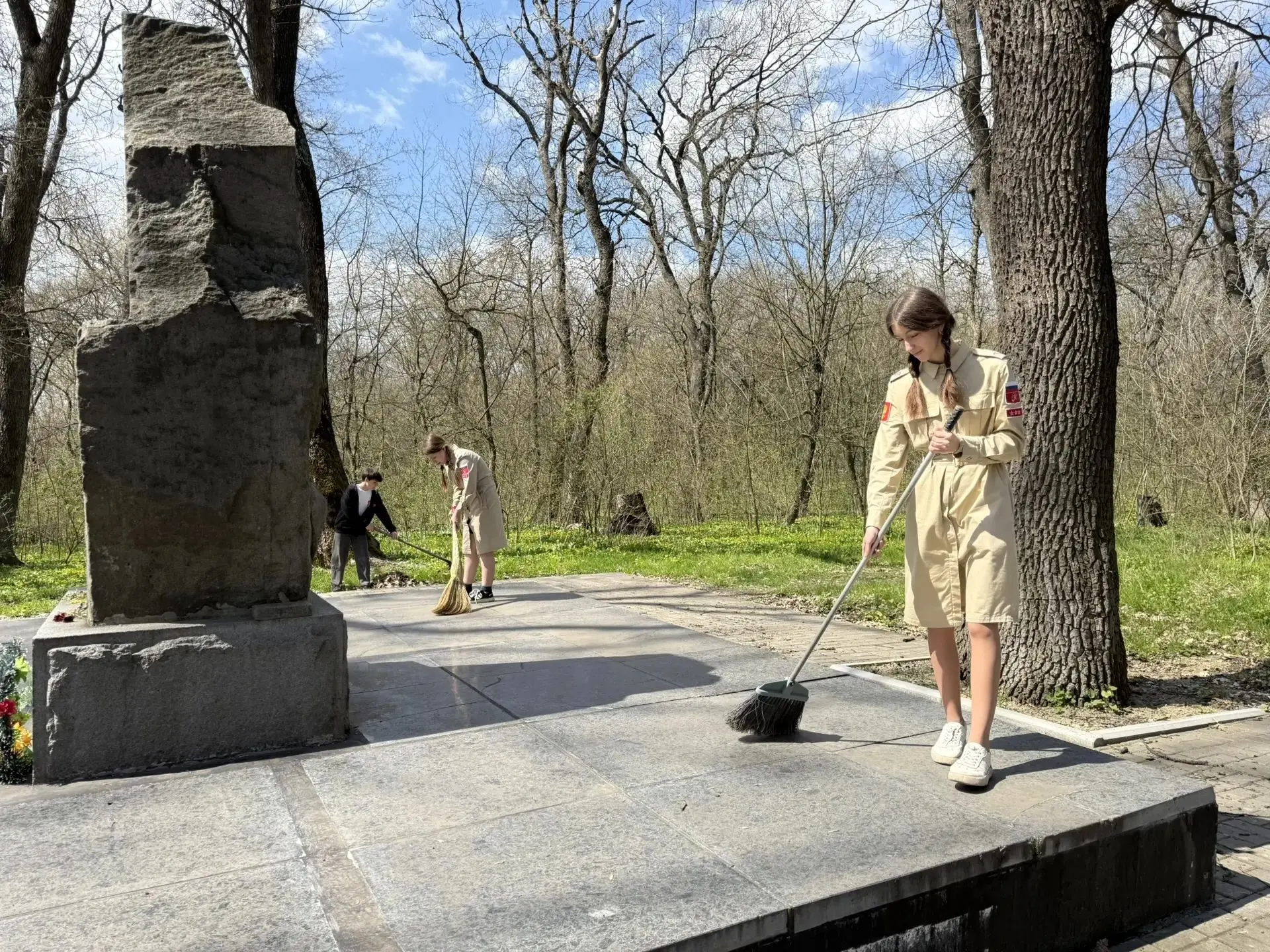 Совместными усилиями участники убрали сухую листву, ветки и мусор вокруг мемориала, привели в порядок прилегающую территорию.