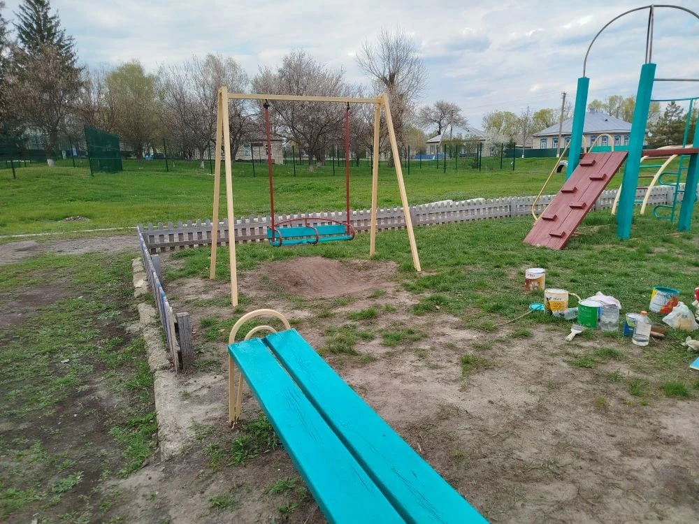 В селе Хворостяновка прошёл Эко-день: работники отдела обеспечения жизнедеятельности населённых пунктов совместно с сотрудниками культуры и библиотеки привели в порядок детскую площадку.