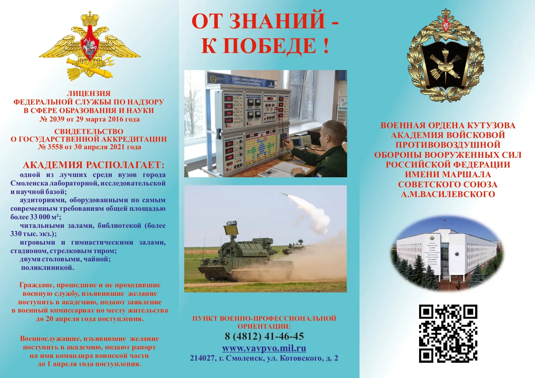 Выбирая вуз Министерства обороны Российской Федерации для получения высшего образования, Вы выбираете широкие возможности для самореализации, достойный уровень жизни, высокий социальный статус.