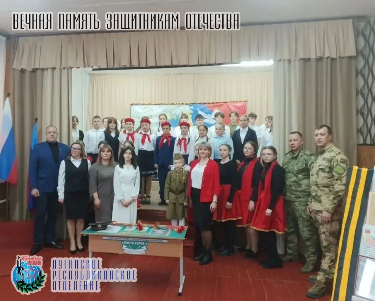 15 апреля Осипов Юрий, представитель Луганского республиканского отделения Всероссийской общественной организации ветеранов «БОЕВОЕ БРАТСТВО», принял участие в торжественном открытии «Парты Героя» в ГБОУ ЛНР «Первозвановская...