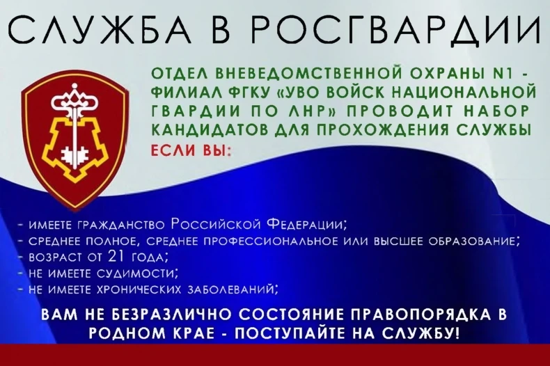 Росгвардия по ЛНР проводит набор граждан на службу в должности: полицейский; полицейский (водитель); старший полицейский.