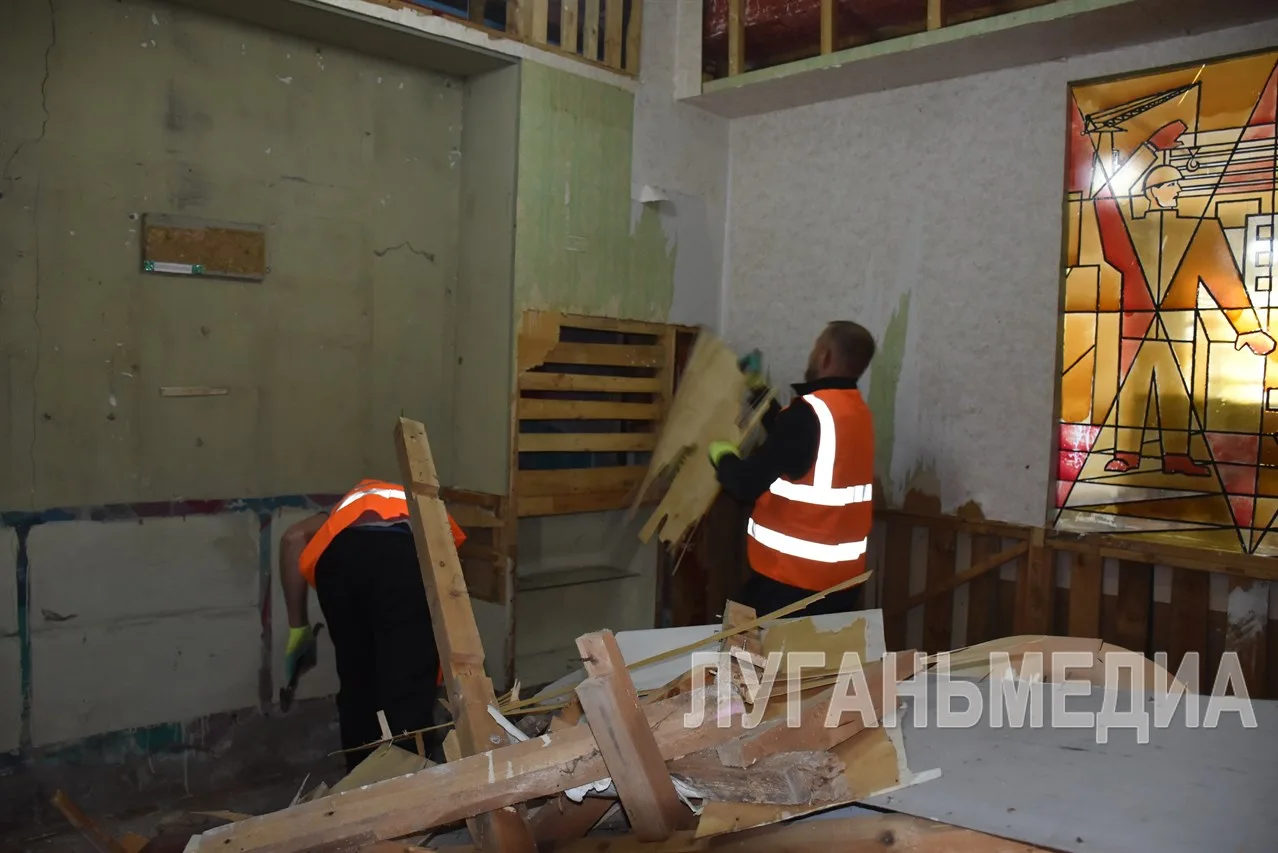 Специалисты подрядной организации проводят ремонт цоколя и удаляют старое покрытие фасада. Параллельно с этими работами стартовал и демонтаж стеллажей и витрин внутри экспозиционных залов культурного учреждения для дальнейшей проектной работы на объекте, а также подготовки музея к замене всех инженерных сетей.