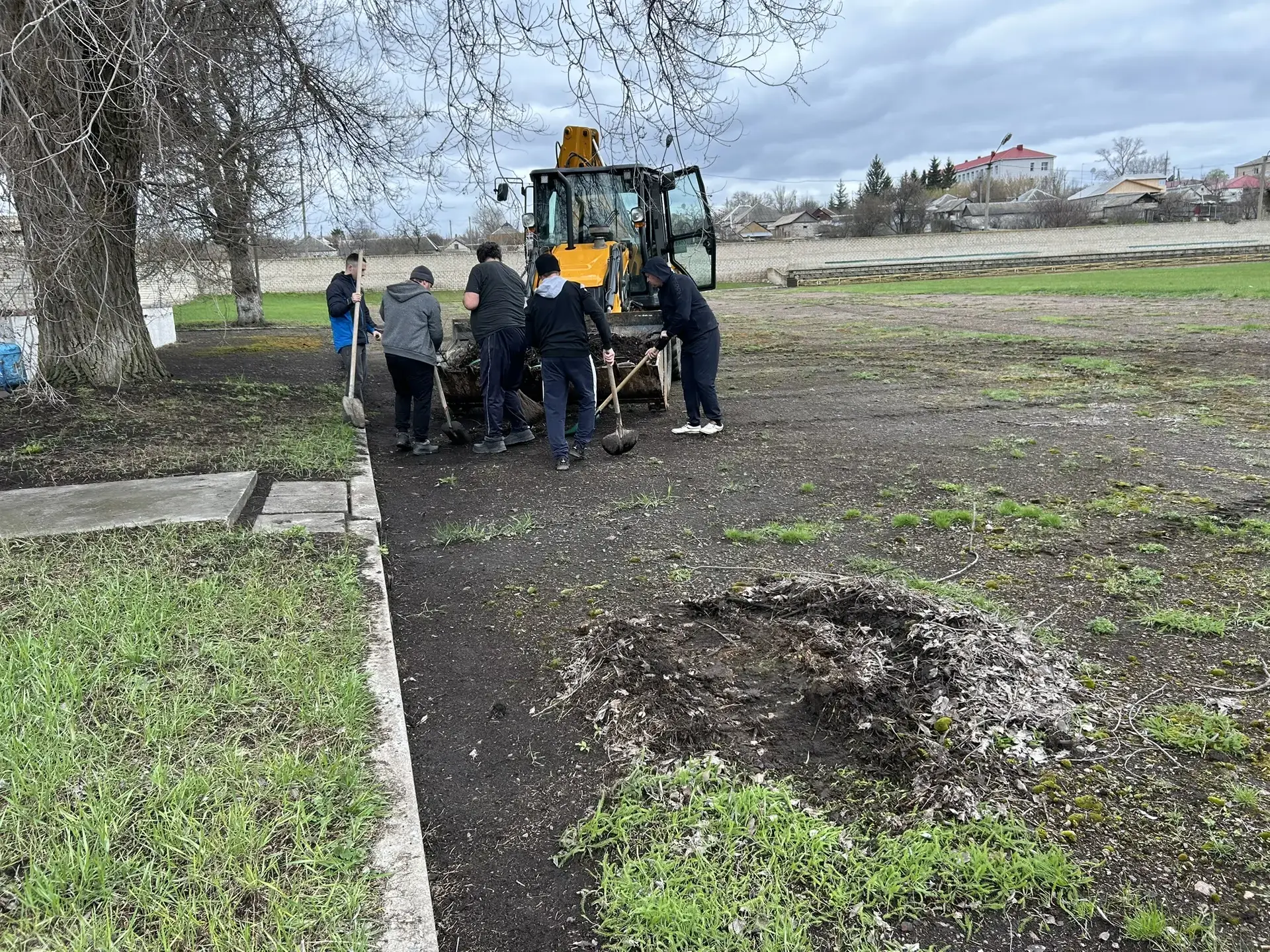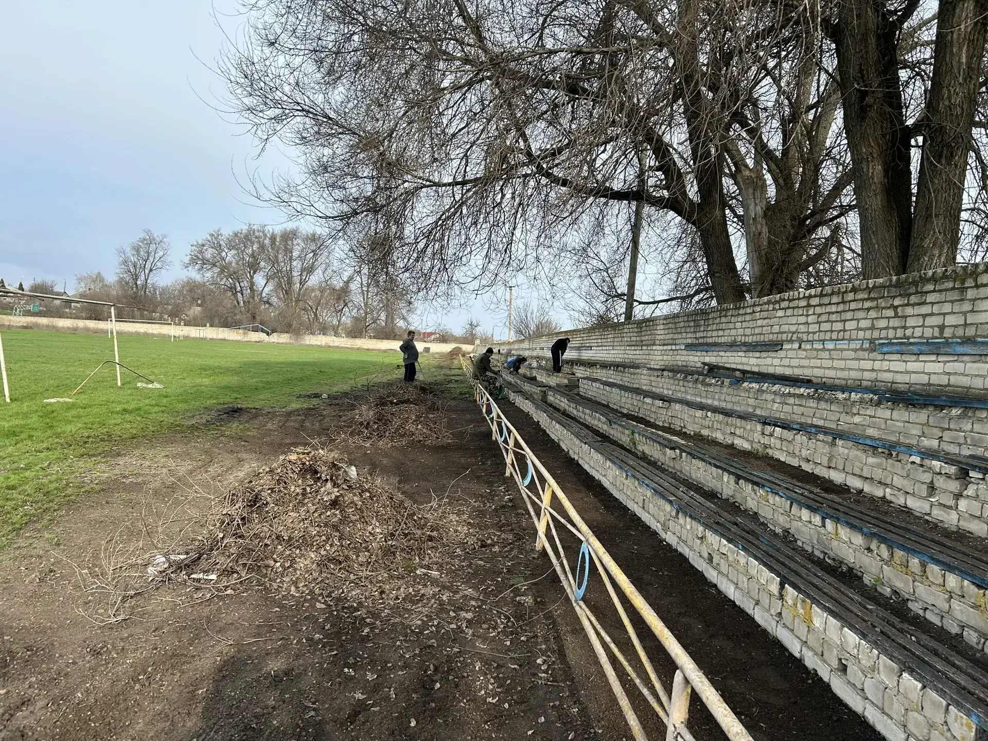 А также на территории стадиона "Урожай", был выполнен большой объем работ: убрана сухая трава и прошлогодняя листва, тщательно подметены беговые дорожки, а весь собранный мусор вывезен.
