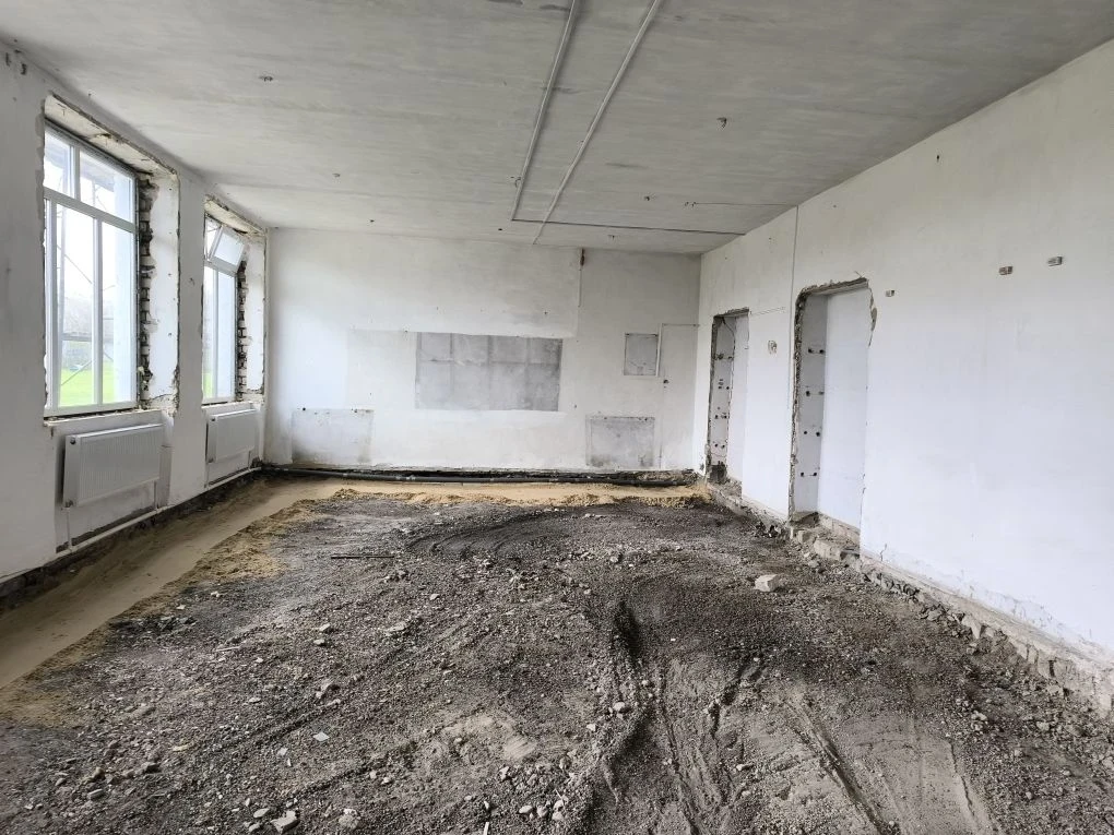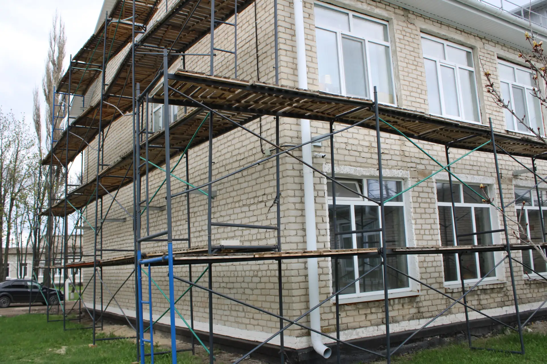 На объекте уже ведутся работы. Специалисты активно занимаются прокладкой слаботочных систем, а также укладкой систем канализации и водоотведения. По периметру здания установлены строительные леса, которые послужат основой для предстоящих работ по утеплению и отделке фасада.