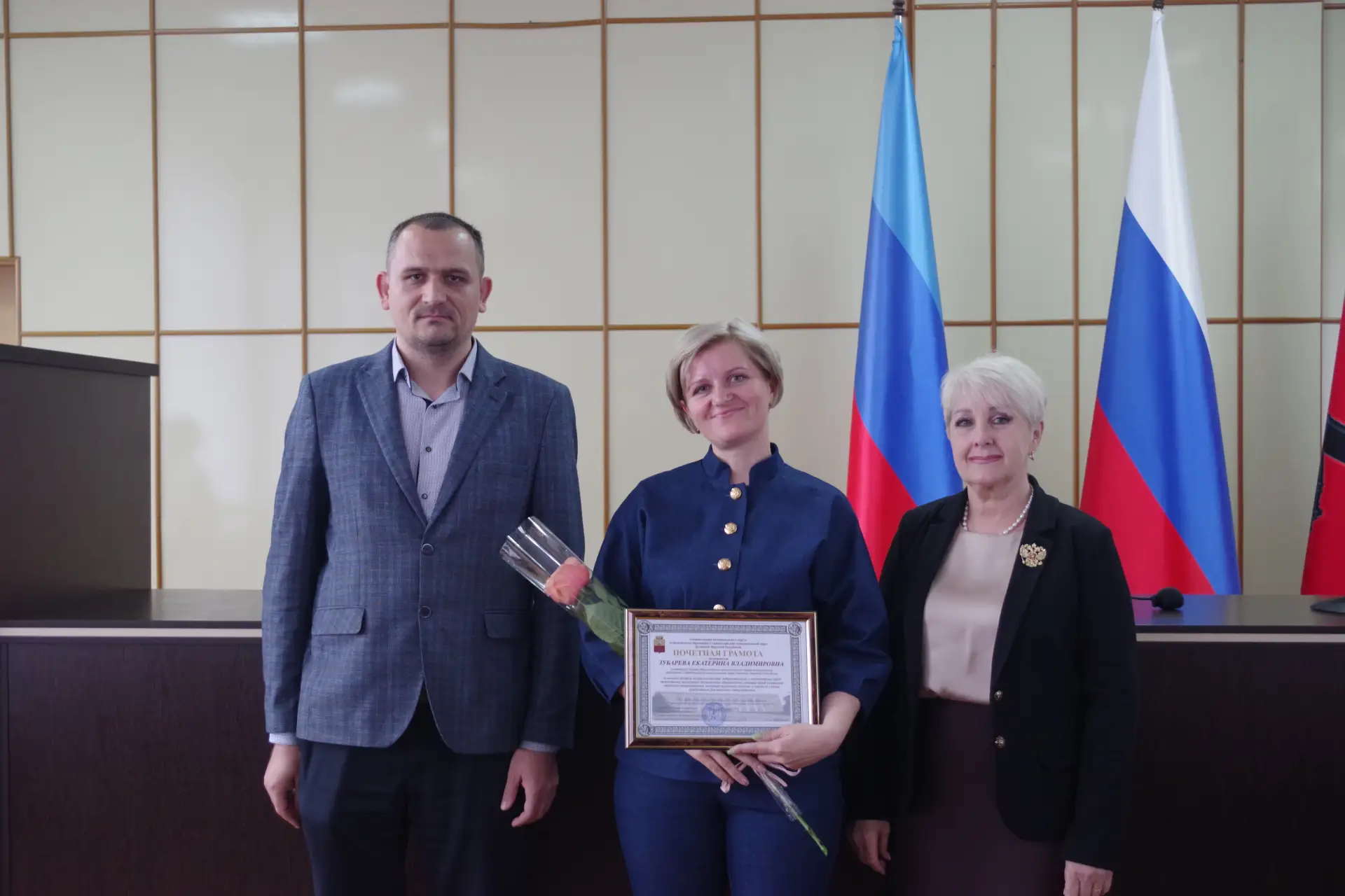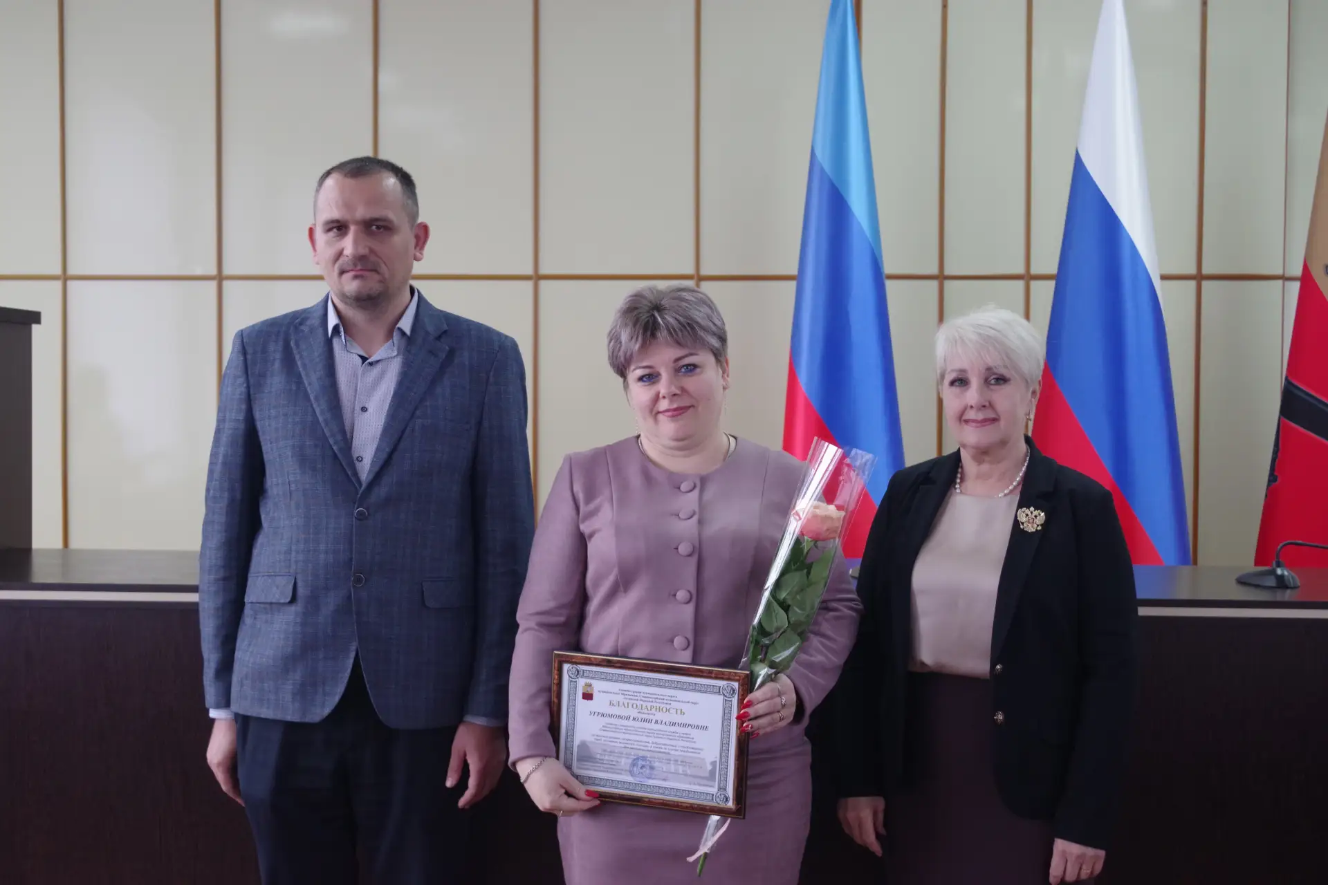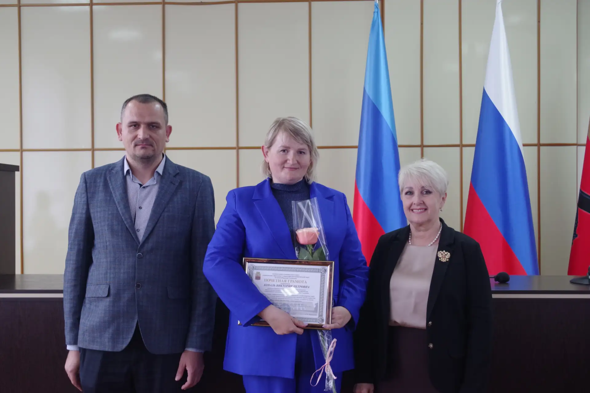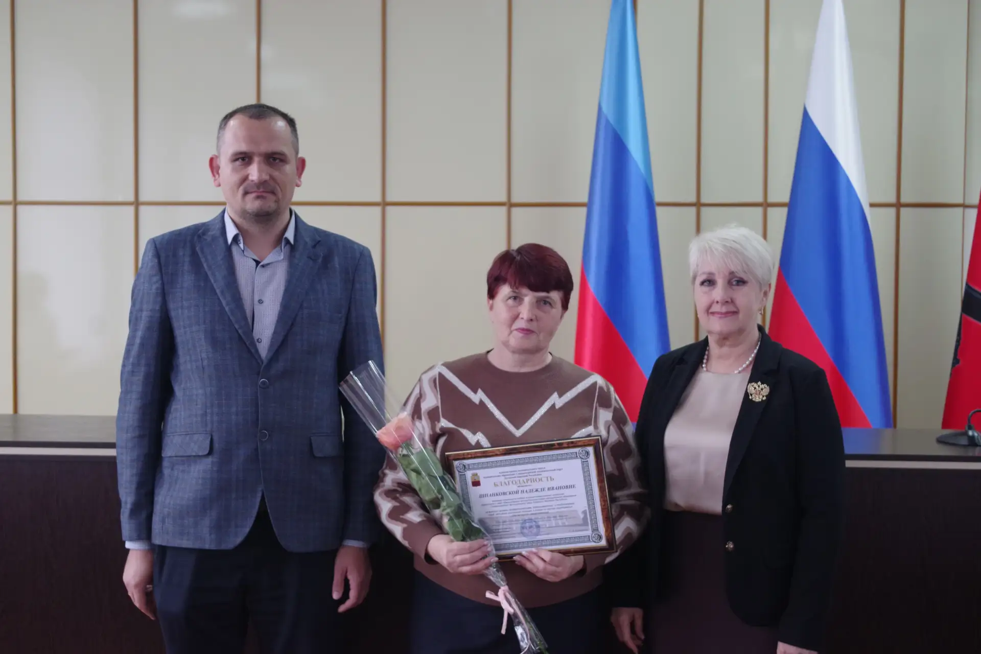 В администрации Славяносербского муниципального округа состоялось мероприятие, где сотрудников администрации и депутатов округа наградили грамотами и благодарностями за вклад в развитие территории.