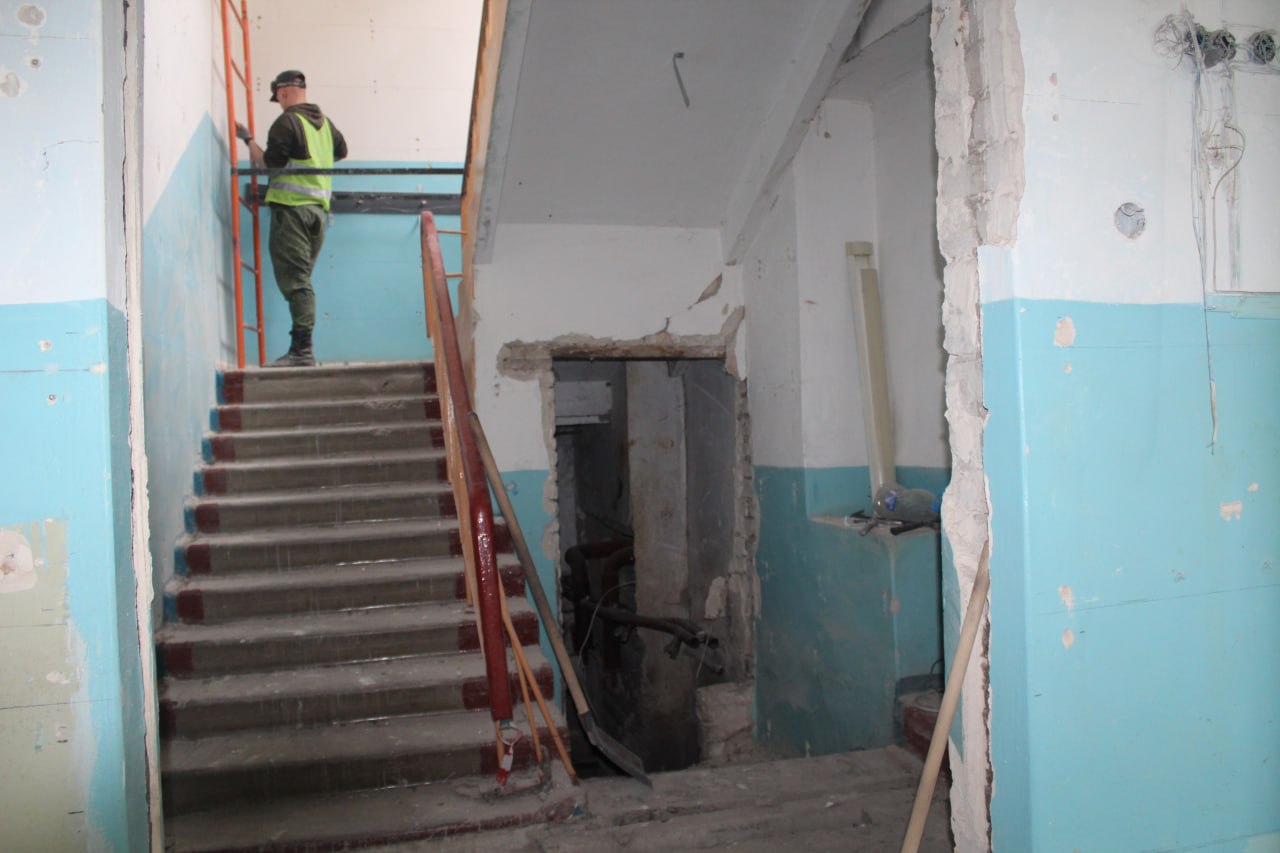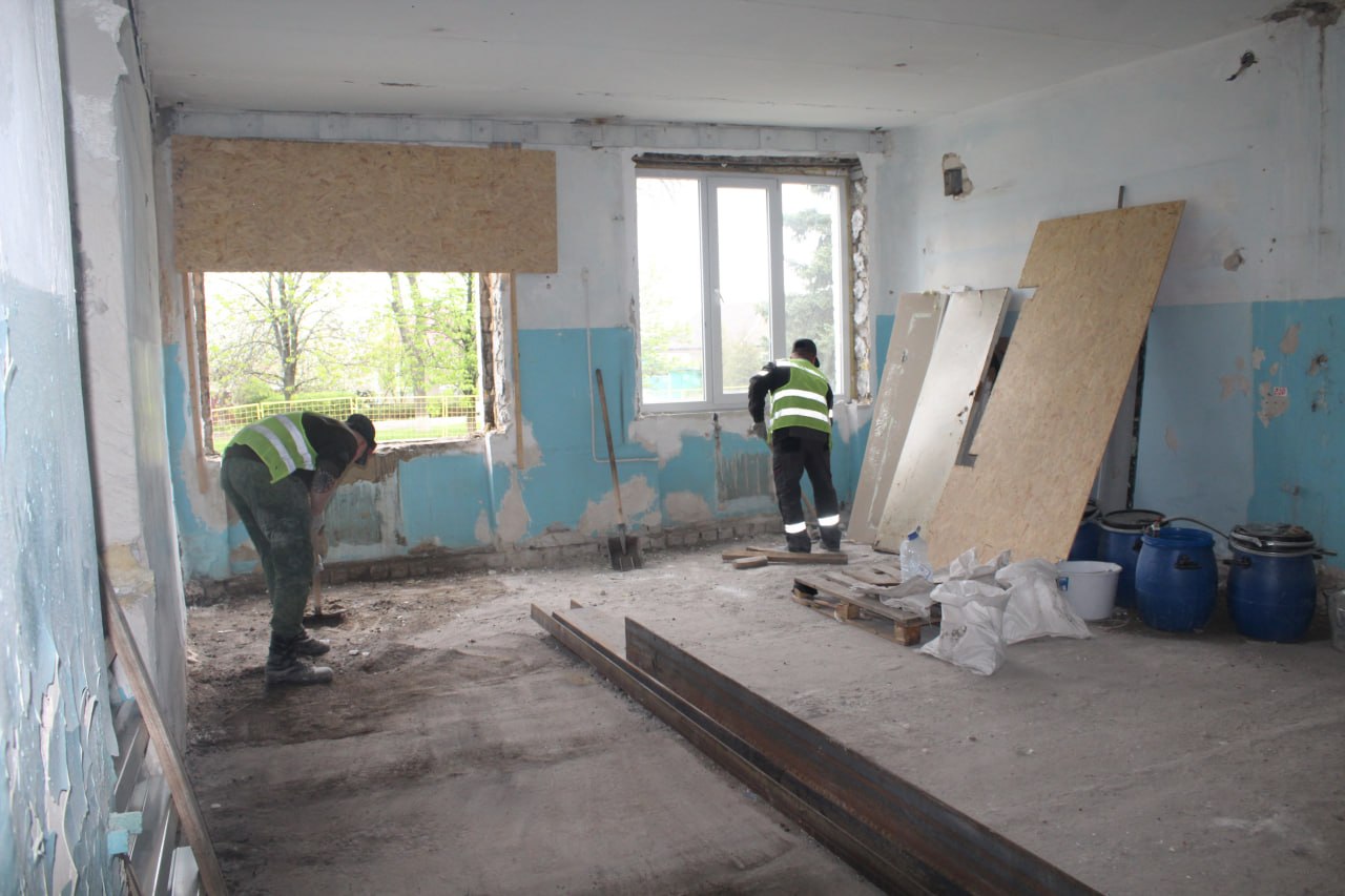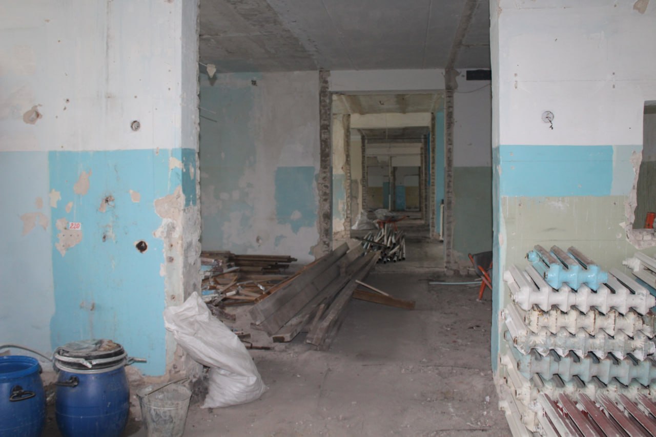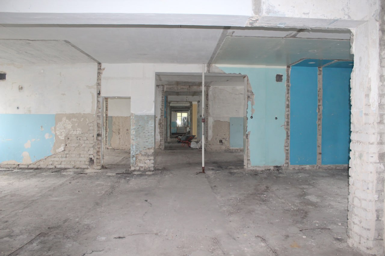 На объекте завершен комплекс демонтажных работ. Запланировано выполнить ремонт кровли, перепланировку кабинетов, заменить инженерные сети – отопление, электроснабжение, водоснабжение и водоотведение, а также провести внутренние отделочные работы.