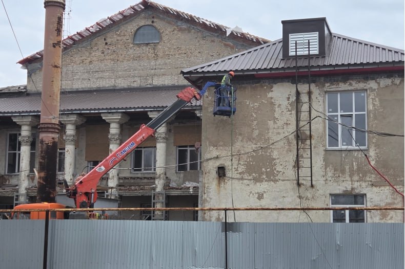 Издалека видно, что ремонт в разгаре. Один из специалистов компании «Стройтехмонтаж», которого зовут Валерий, вкратце рассказал о работе: