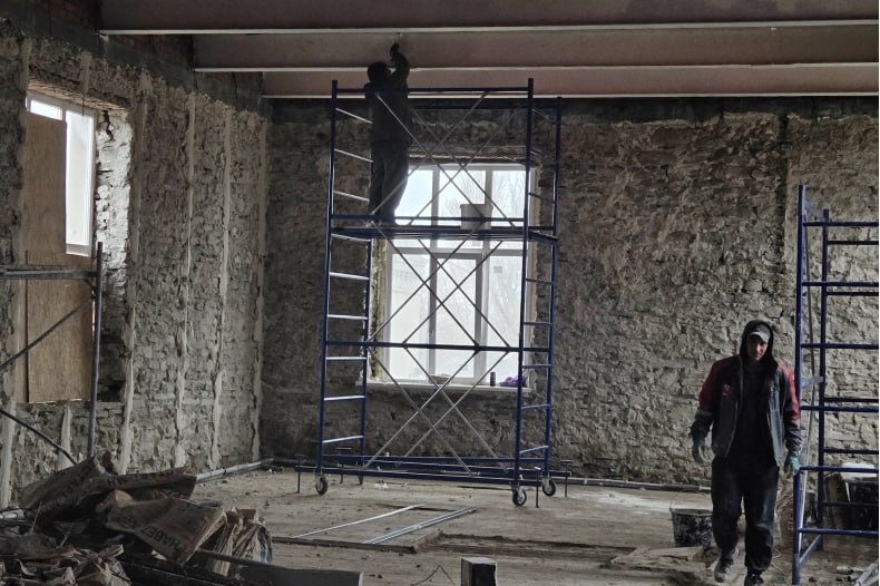 – Окончание ремонта запланировано на конец 2026 года. В данный момент мы полностью перекрываем крышу, укрепляем фундамент, меняем электрическую проводку, ремонтируем стены внутри и снаружи, заменили чердачные перекрытия на металлические балки, обновляем фасад здания. Лепнину на стенах и потолках убирать не будем, произведем их полную реставрацию. В работах задействовано около 50 специалистов. Ребята трудятся не покладая рук, чтобы успеть сдать объект в срок. На входе в клуб нас встретила Нина Моисеенко, и мы продолжили общение.