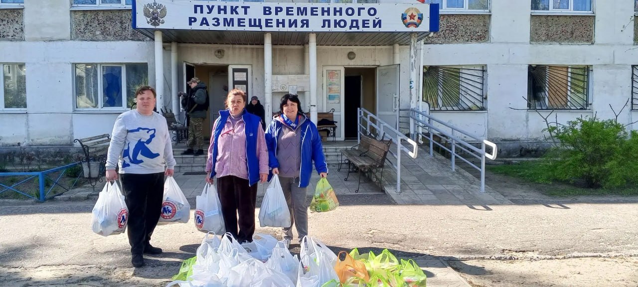 Активисты Рубежанского местного отделения ВПП «Единая Россия» посетили пункт временного размещения (ПВР) и передали продуктовые наборы и средства бытовой химии жителям Рубежного, временно разместившимся там после попадания авиабомбы в их дом.