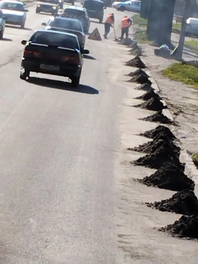 Работники МУП «СКАТ» очищают дорожное покрытие от песка, которым посыпали дороги зимой, и от грунтовых наносов после дождей, чтобы вернуть чистоту дорогам.