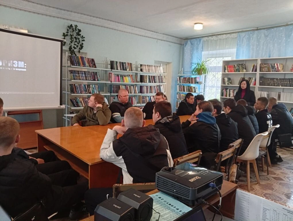 В библиотеке-филиале №5 кв. Гагарина, прошёл важный урок-предупреждение для студентов технико-экономического колледжа, посвящённый теме терроризма как серьёзной угрозы обществу. В ходе мероприятия сотрудники библиотеки организовали просмотр содержательного фильма, который подробно раскрывал проблему терроризма, его причины и последствия.