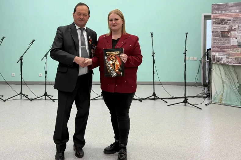 В завершение мероприятия состоялось вручение книги «Чернобыльцы Луганщины», которую передал в дар Дворцу культуры представитель общественной организации «Союз Чернобыль» Рашид Алдаркин.