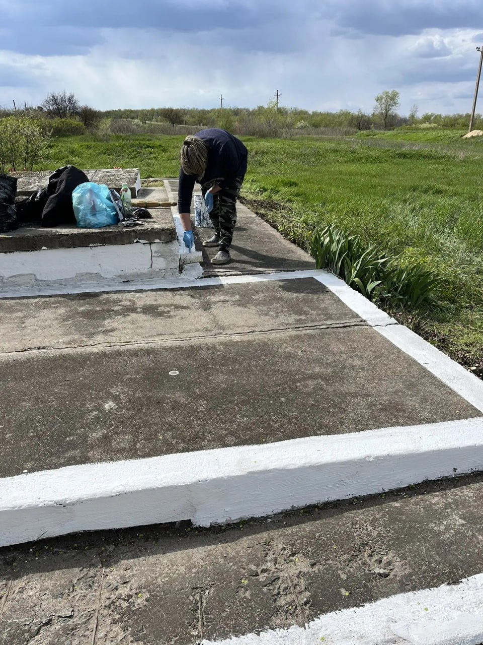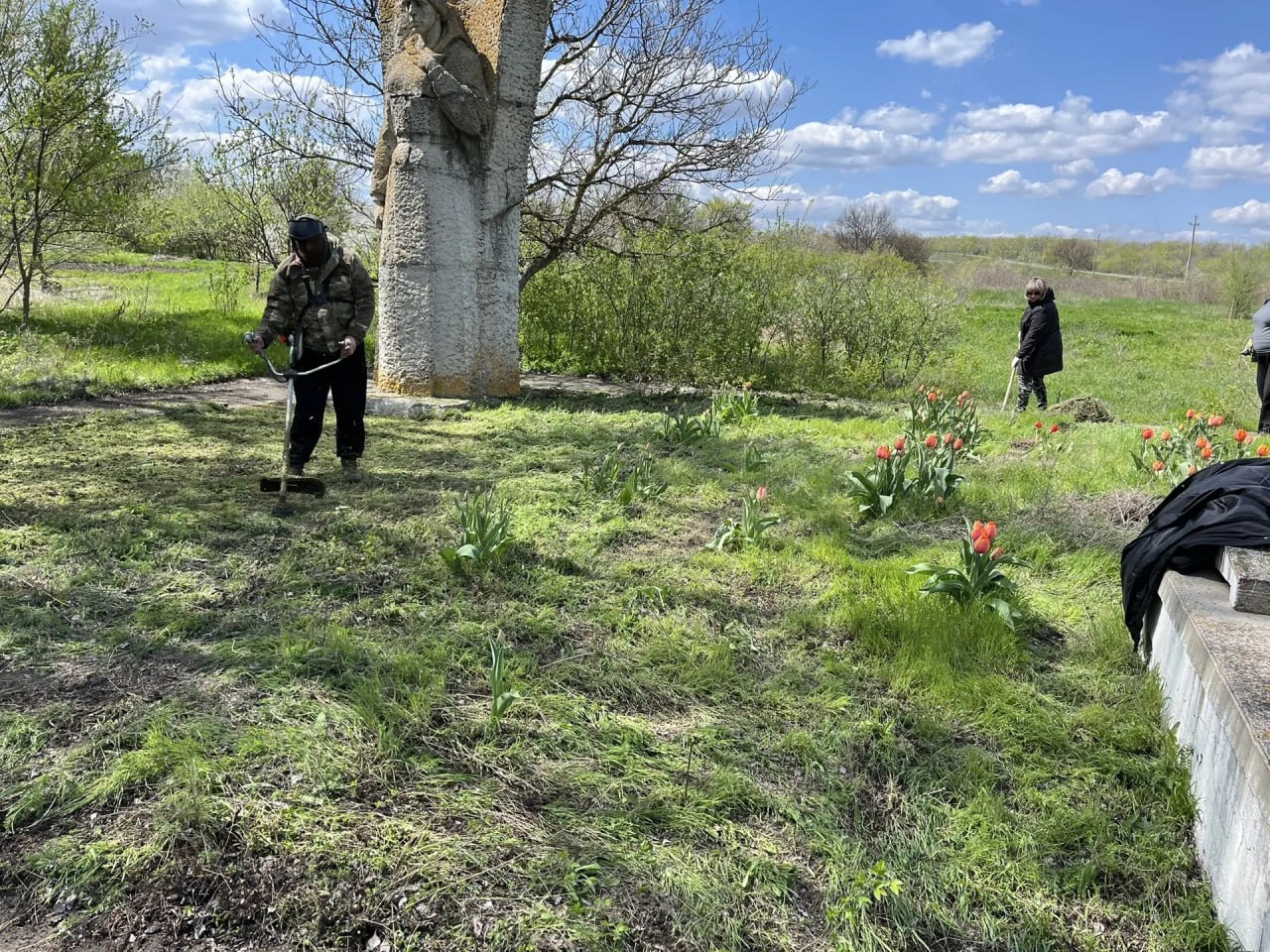 Участники субботника произвели покос травы на братской могиле и прилегающей территории, вырубили поросль вдоль аллеи, убрали мусор, подмели и произвели побелку поребрика, ступеней и цветника.