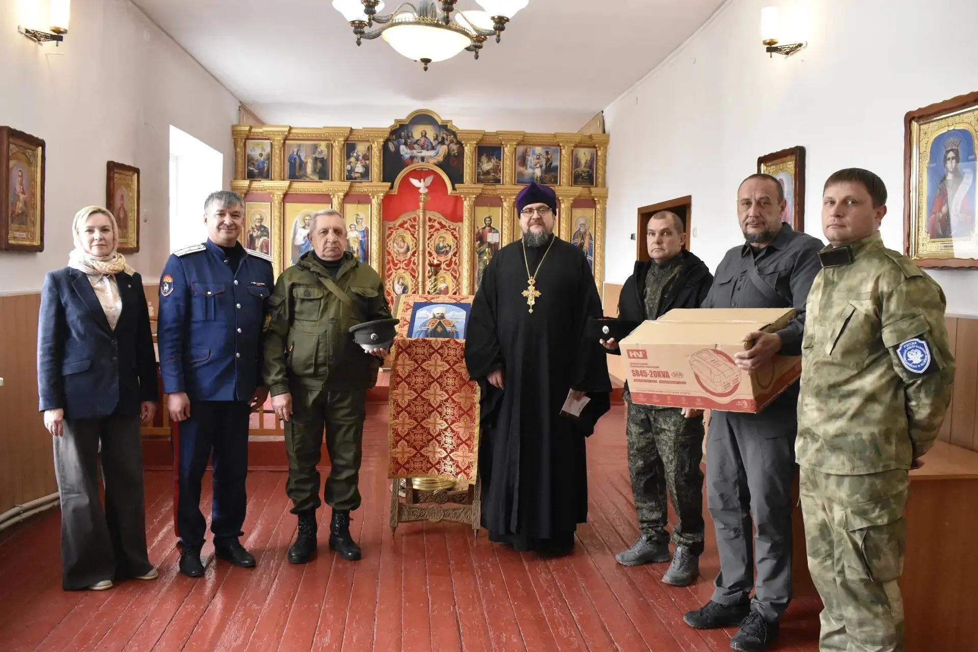 В завершение мероприятия представители городского казачьего общества "Станица Брянка" передали в дар храму стабилизатор напряжения, что добавило событию особой значимости и подчеркнуло единство общины.