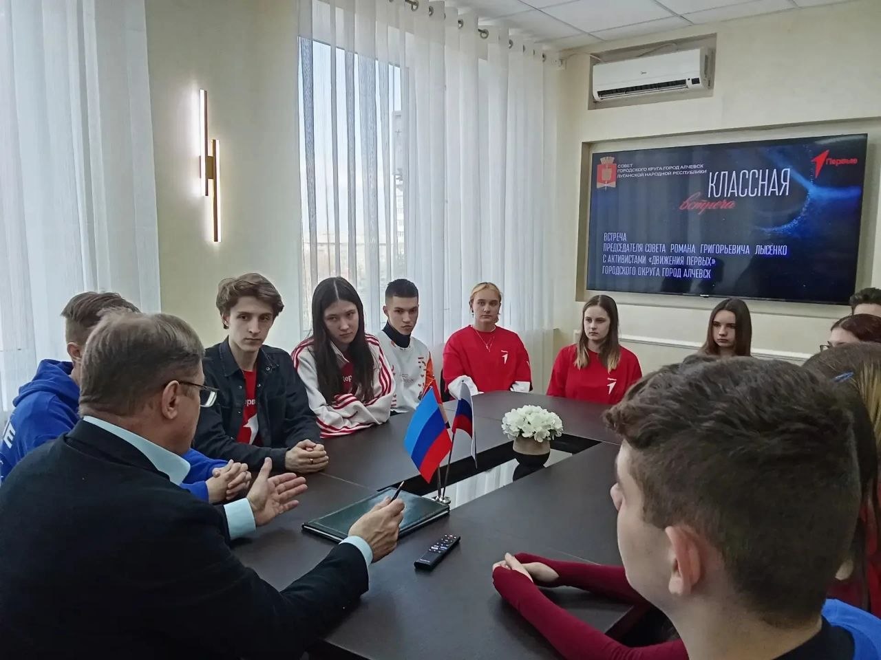 В кабинете царила атмосфера оживленного диалога и взаимного вдохновения. Состоялась знаковая встреча с представителями молодого и энергичного «Движения первых». Это событие стало важным шагом в укреплении связи между депутатским корпусом города и его самым активным и перспективным поколением, готовым брать на себя ответственность за будущее Алчевска.