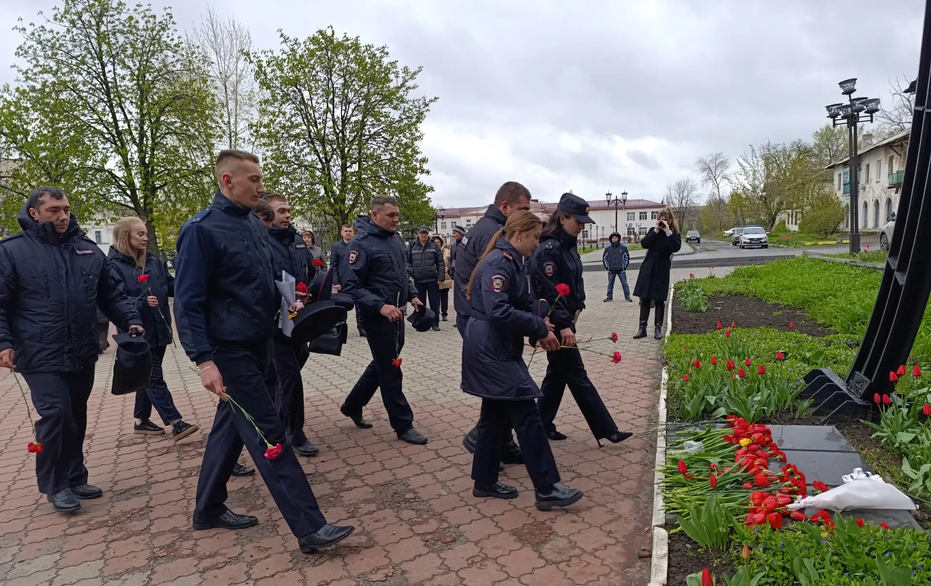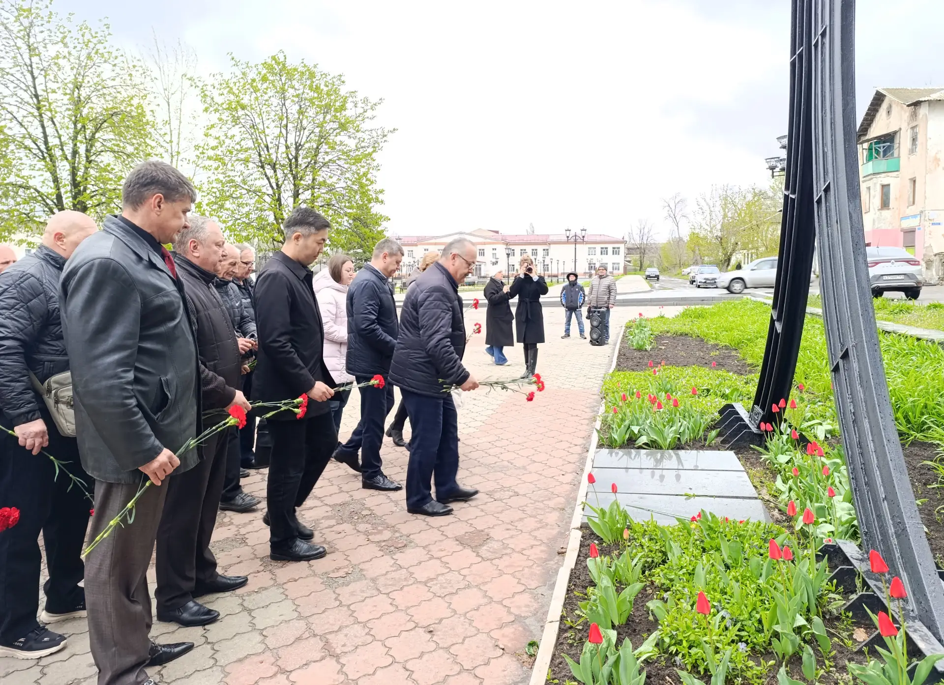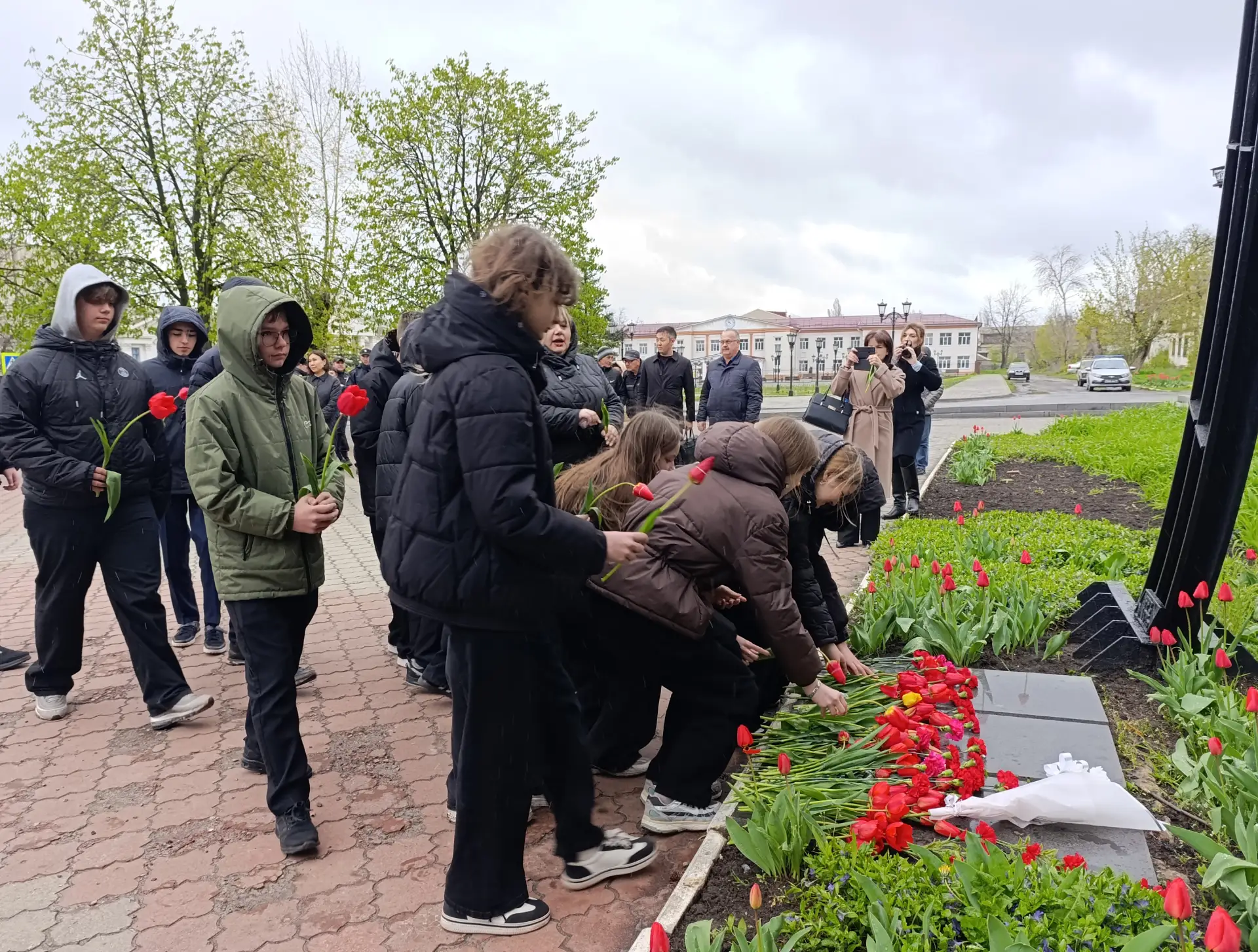 Участники мероприятия почтили память героев минутой молчания и возложили цветы к памятному знаку.