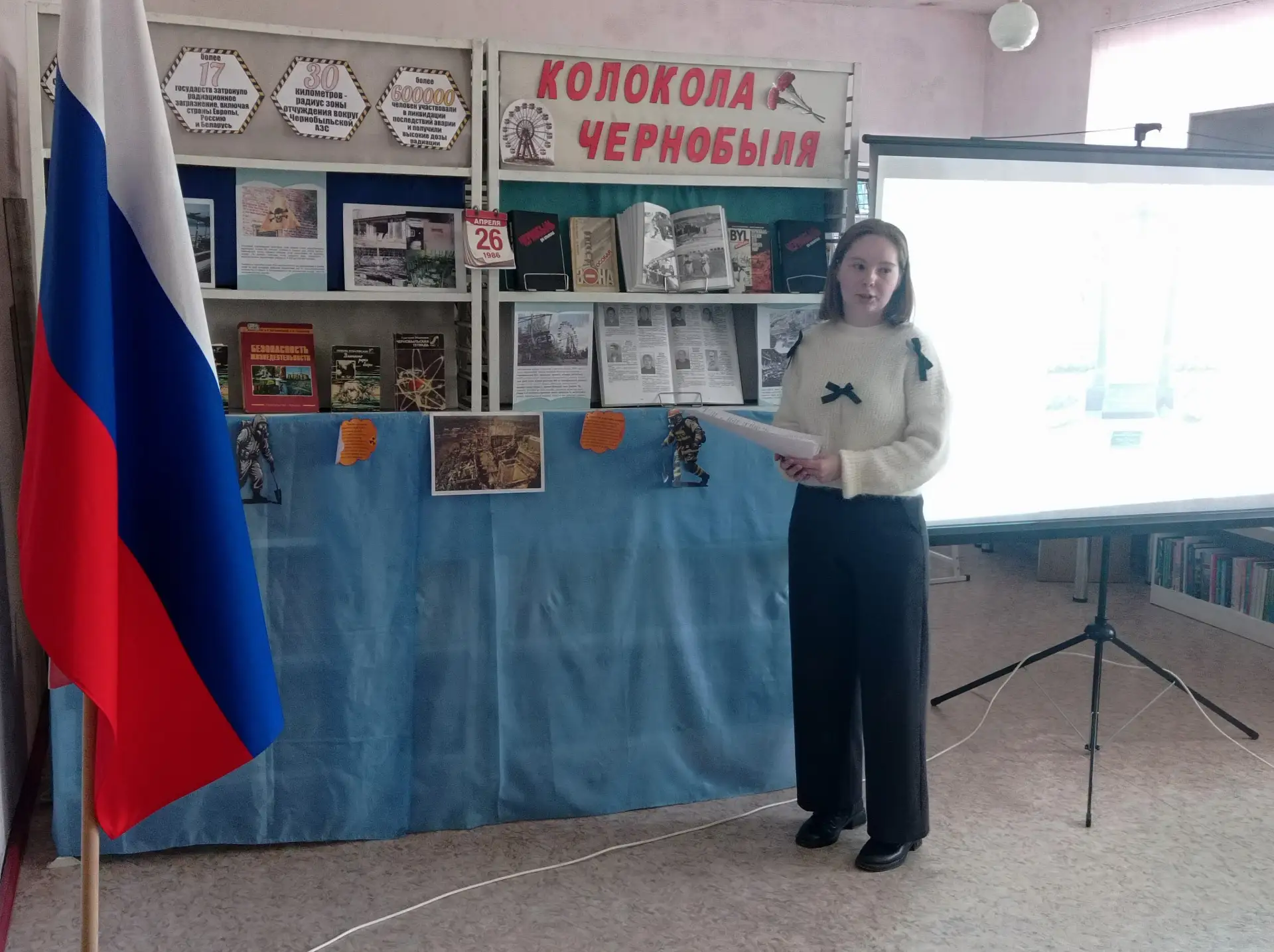 Библиотекарь рассказала школьникам о том, что происходило в первые минуты после взрыва: как прозвучали аварийные сигналы, что происходило внутри станции, как персонал и пожарные столкнулись с невидимой угрозой радиации. Особое внимание было уделено первым 28 пожарным, среди которых – Л. Телятников, В. Кибенок, В. Правик. Дети узнали о мужестве и самоотверженности этих людей и о том, какой ценой им удалось предотвратить ещё большую беду.
