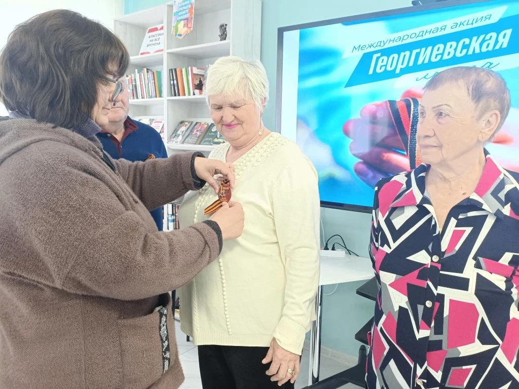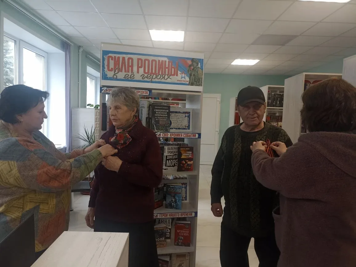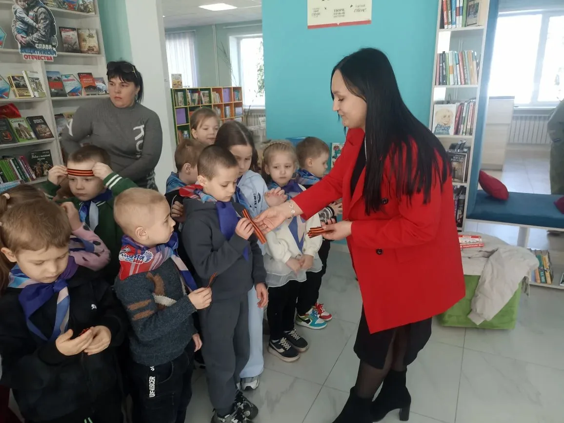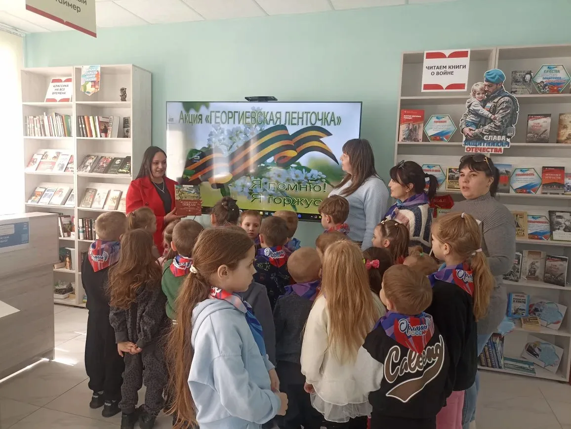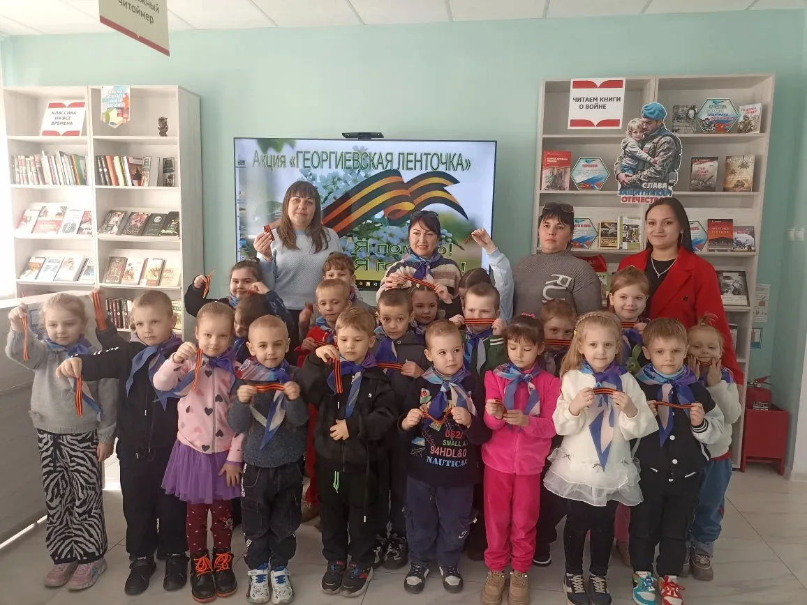 23 апреля для воспитанников детского сада «Ладушки» вручили георгиевские ленточки и провели познавательную беседу. Ребята узнали, как правильно носить этот символ, какое значение он несет и почему его принято прикалывать именно у сердца. 24 апреля георгиевские ленточки были вручены участникам литературного клуба «Вдохновение» во время их очередного заседания.