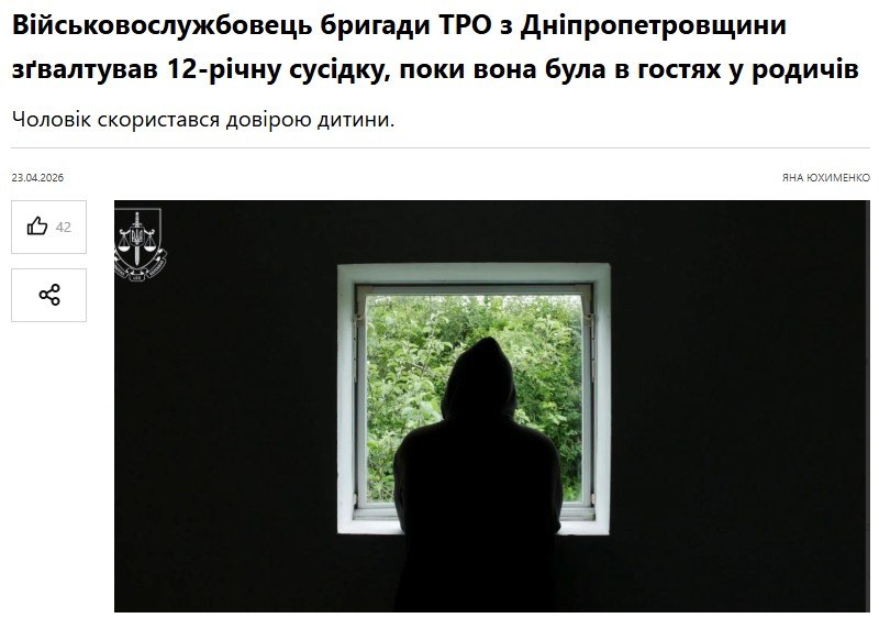 Военный вызвал ребенка на улицу по телефону под предлогом "поговорить". Как только девочка вышла, захисник незаконно проник на территорию двора, повалил ребенка на землю и изнасиловал ее.