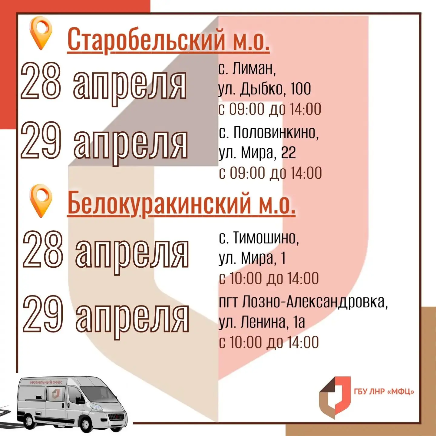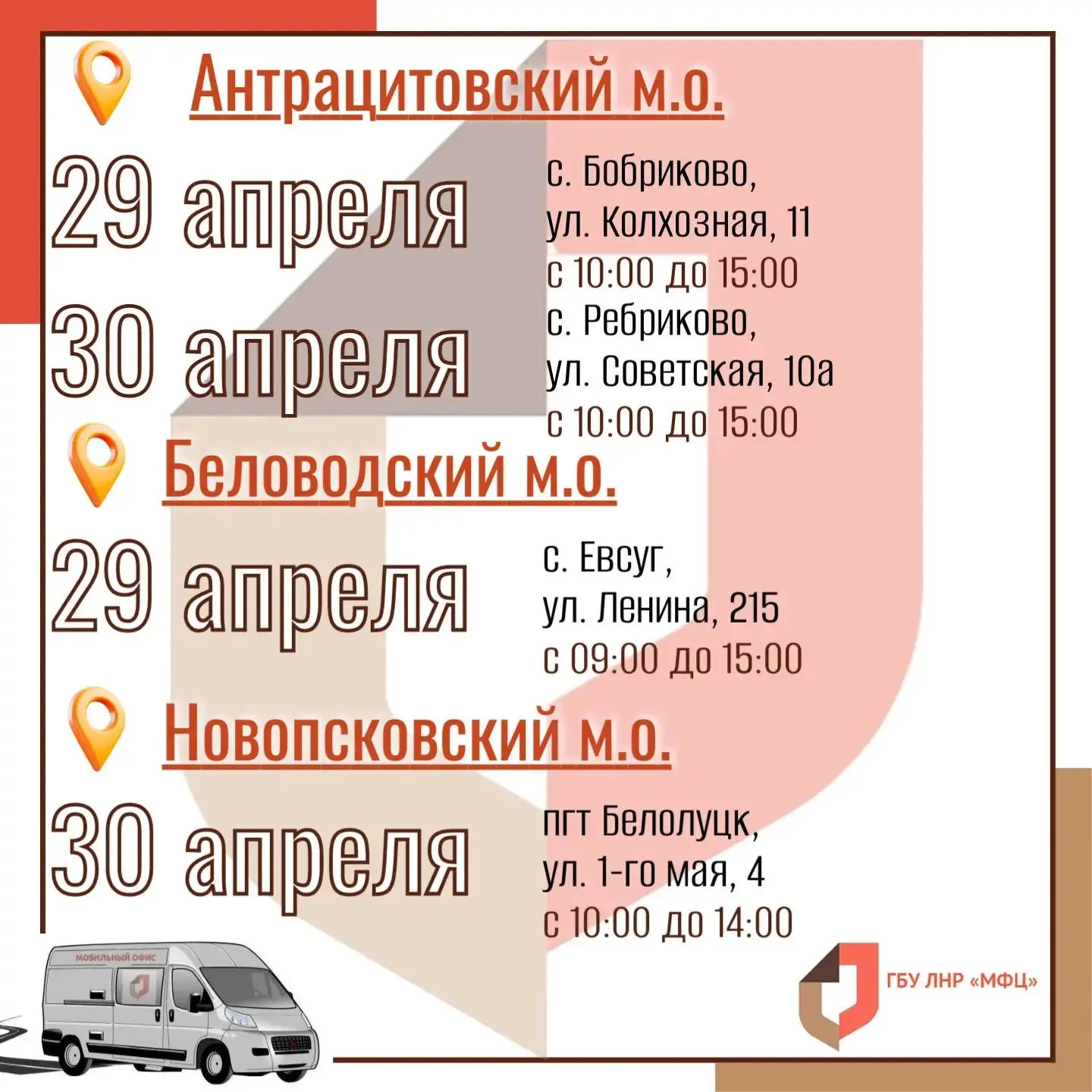 Ознакомиться с полным графиком работы мобильного офиса на апрель 2026 года можно на сайте учреждения.
