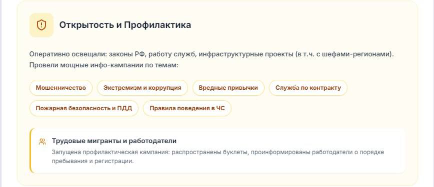 Делимся результатами работы в сфере внутренней политики и информационного взаимодействия. Наша главная цель — открытость и поддержка ваших инициатив.