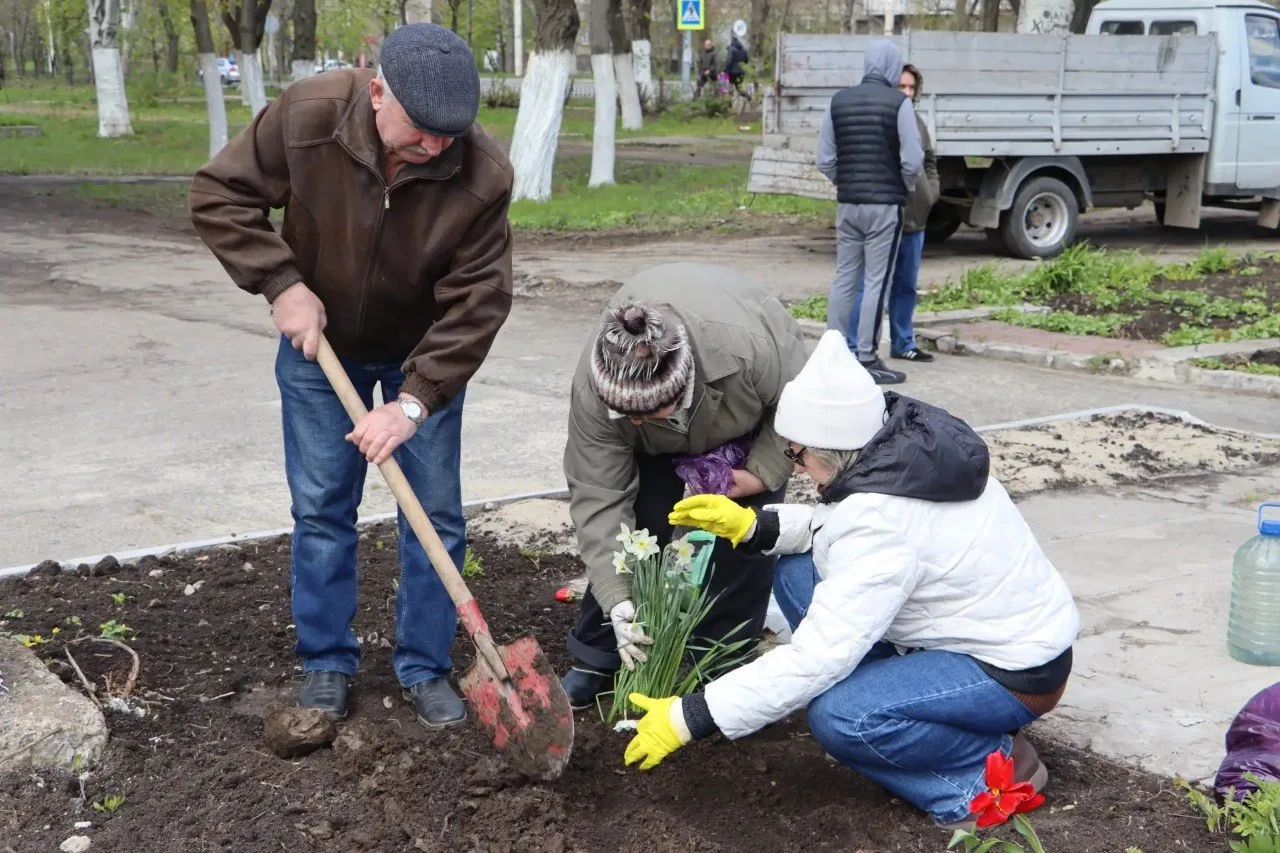 В Стаханове прошёл Всероссийский субботник. Одной из главных площадок стал сквер Ликвидаторов аварии на Чернобыльской АЭС — место готовят к открытию, поэтому работу там провели основательно.