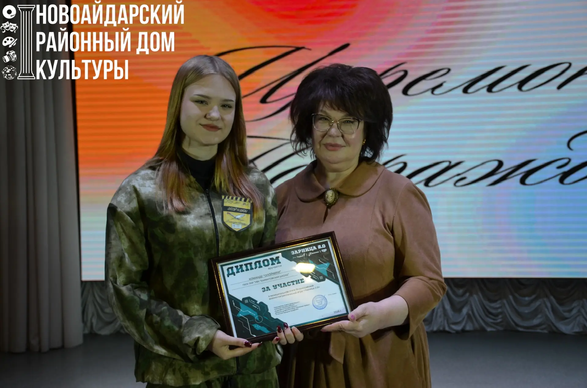 24 апреля 2026 года в концертном зале Новоайдарского дома культуры состоялось торжественное закрытие всероссийской военно-патриотической игры «Зарница».