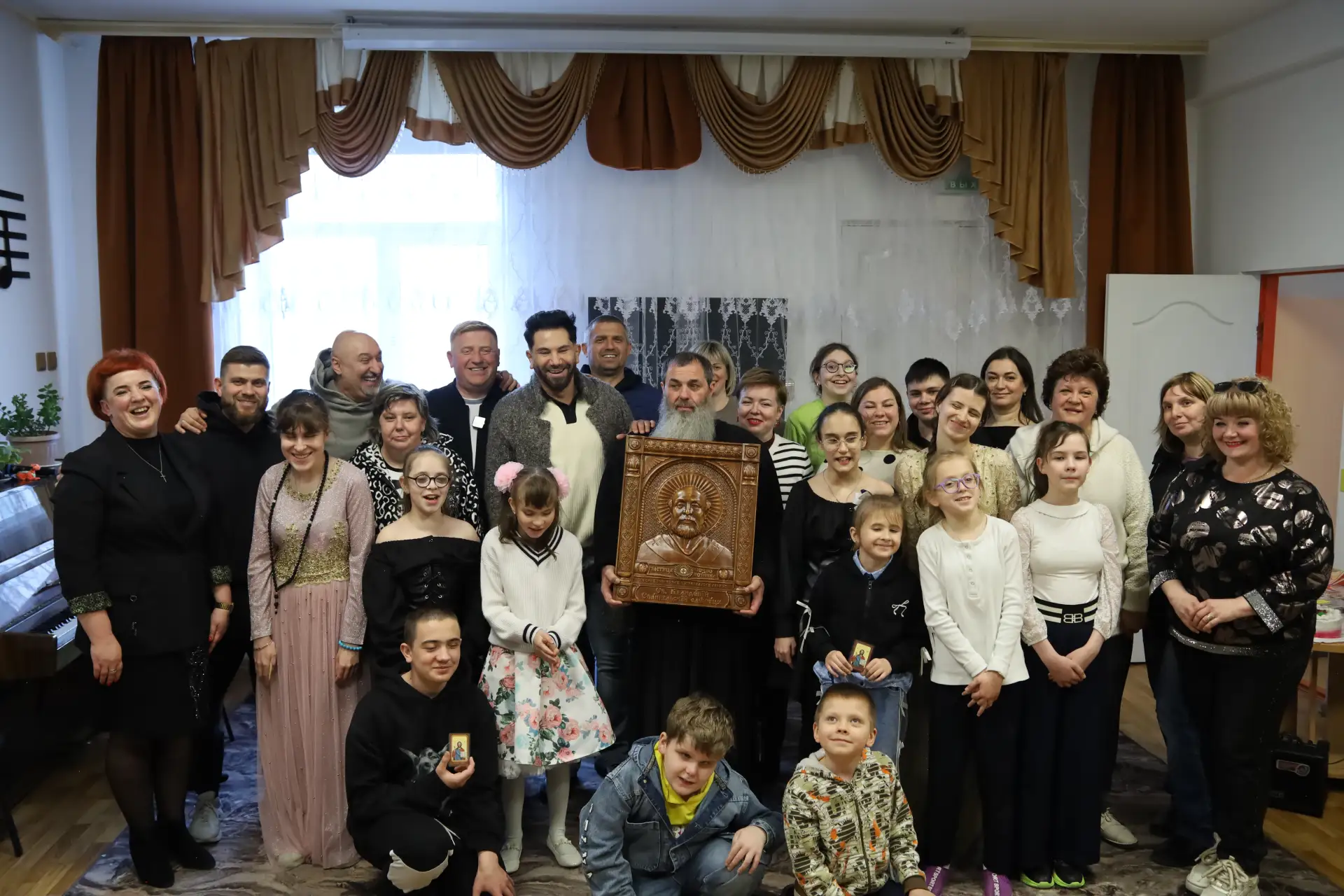 Одним из ключевых моментов стала передача двух икон. Одна из них – уникальная: со шрифтом Брайля, чтобы незрячие дети могли прочитать имя святого пальцами, она будет храниться в школе-интернате. Вторую икону передали в онкологическое отделение.